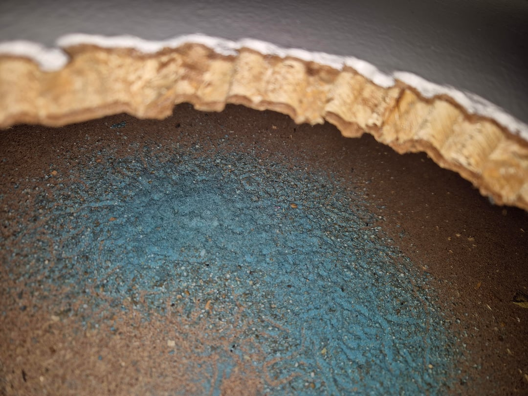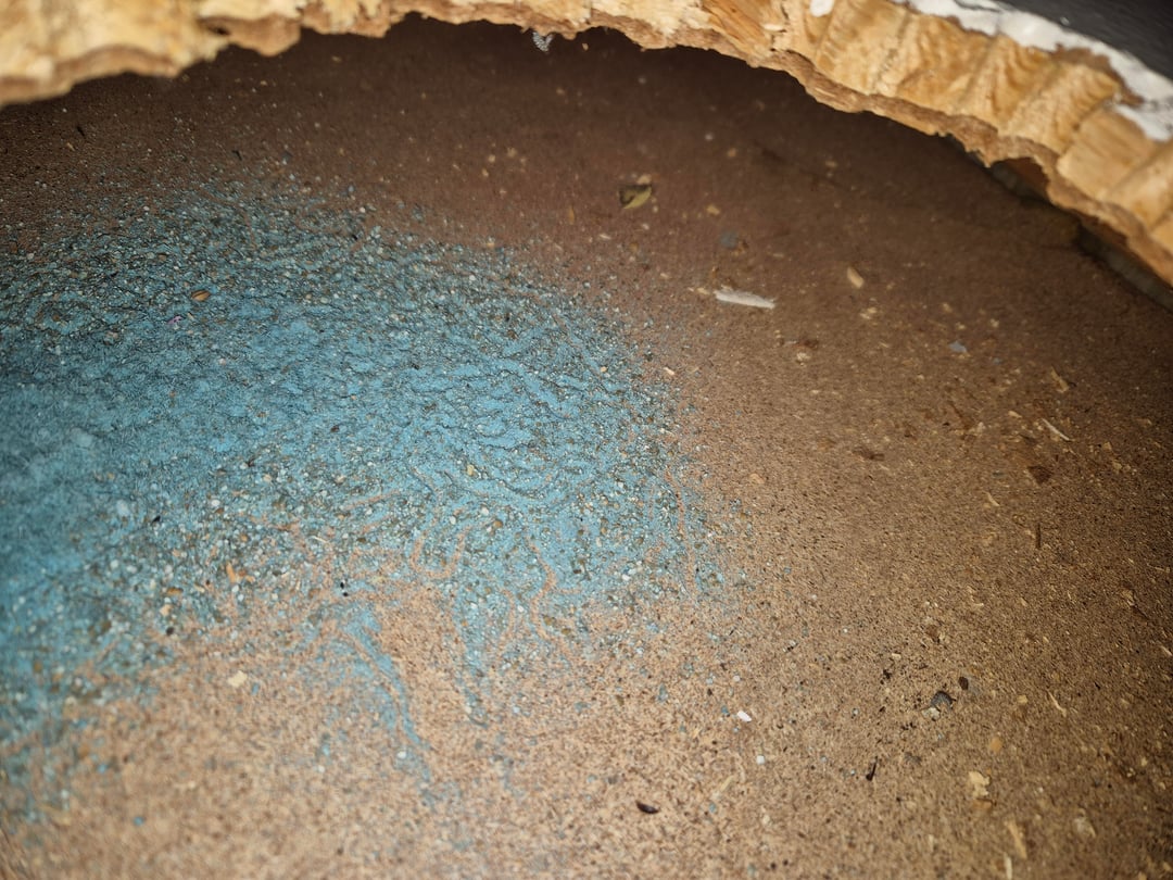 Egentligen är det väl skitsamma, då vi inte har nåt under den delen av köksbänken, men blir lite fundersam vad det blå pulvret/spånet/fibrerna kan vara. Är det nåt råttgift? Mögel? Luktar inget särskilt men vill inte börja peta där, så har för stunden täckt över med silvertejp. Alla tips är välkommna!