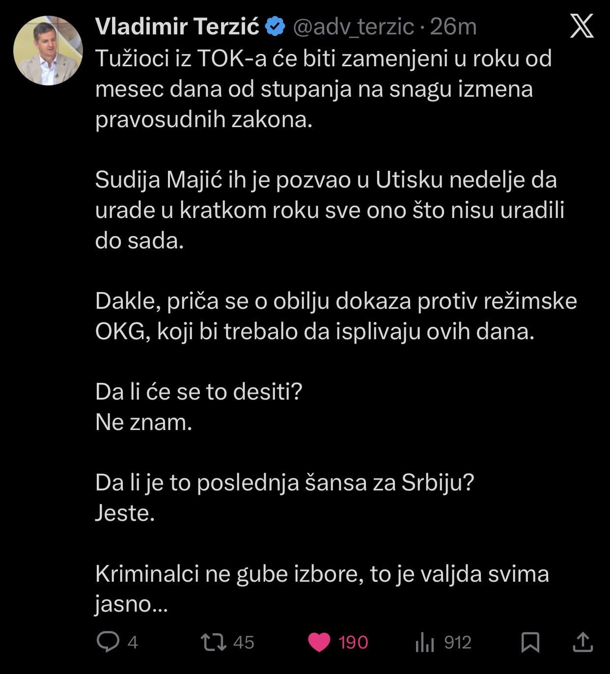 Ja sam kacio postove o ovome više puta, TOK dovidjenja, Viši savet tužilaštva dovidjenja i tu je kraj, kartel vodi 100% države.