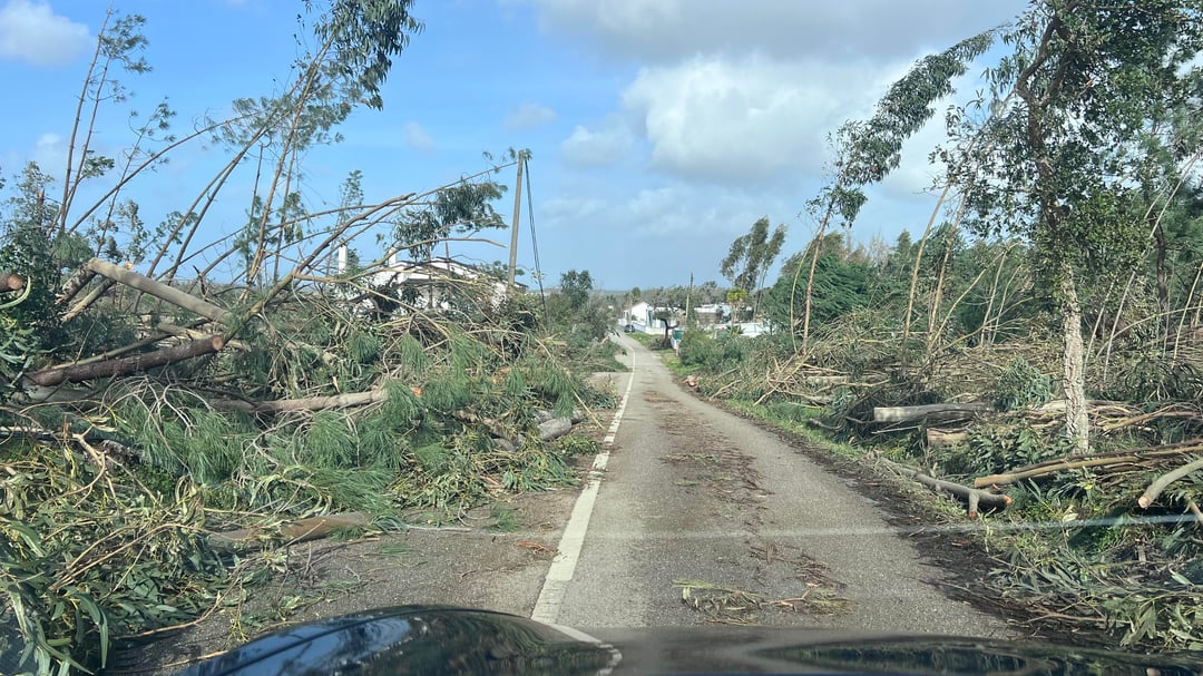 Quando finalmente consegui sair da minha zona, o que vi foi um verdadeiro cenário de guerra: centenas e centenas de árvores com raízes profundas, mais grossas do que o meu braço, arrancadas do chão. Outras, claramente com mais de 70 anos, partidas ao meio como se fossem palitos. Dezenas de postes de eletricidade em cimento partidos ao meio. Vizinhos a quem foram ter oliveiras enormes ao quintal e nem oliveiras tinham. Portões com mais de 100 kg que voaram mais de 50 metros. Familiares com pilares de betão arrancados do chão.