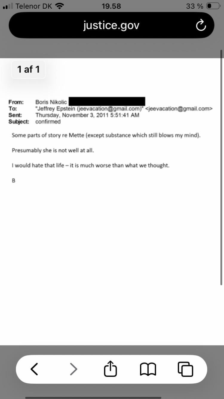 I think it’s safe to say Mette’s friend Boris Nikolic and Epstein are talking about the Princess here. Boris Nikolic is “confirming” some stories about Mette (except substance, whatever that means), and then continues to speculate that she is “not well at all”. Were there any public drama or royal problems around this time (November 2011) that any of you know about? Or is it simply that Mette is not happy with her life, and maybe using Boris and Epstein as (twisted) way to escape it all?
