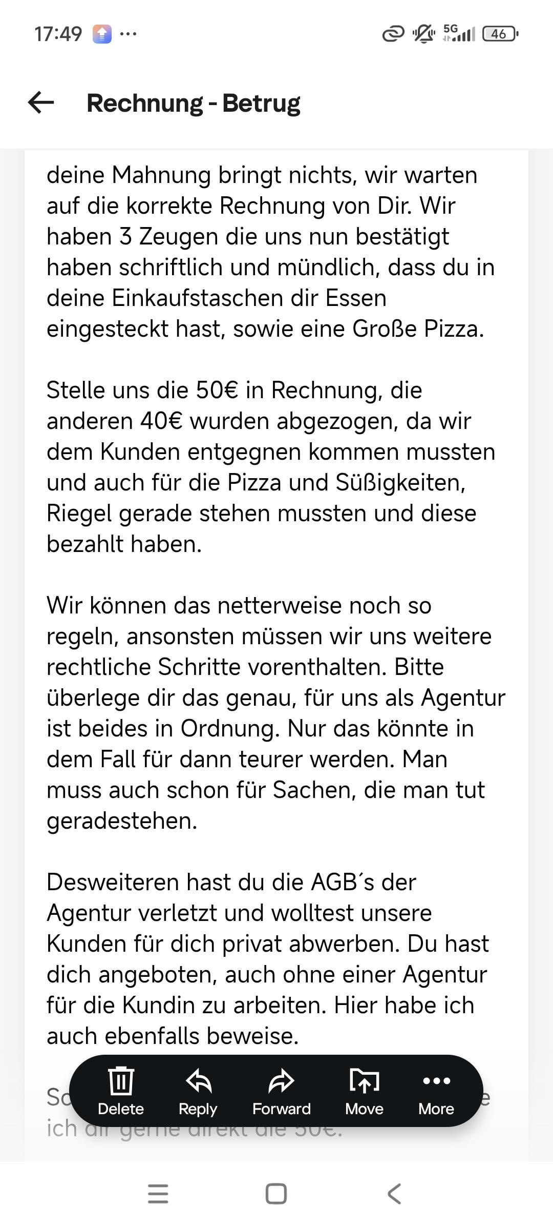 I sent the person a Mahnung today, and she replied quickly but now she titled the E-mail as : Betrug.