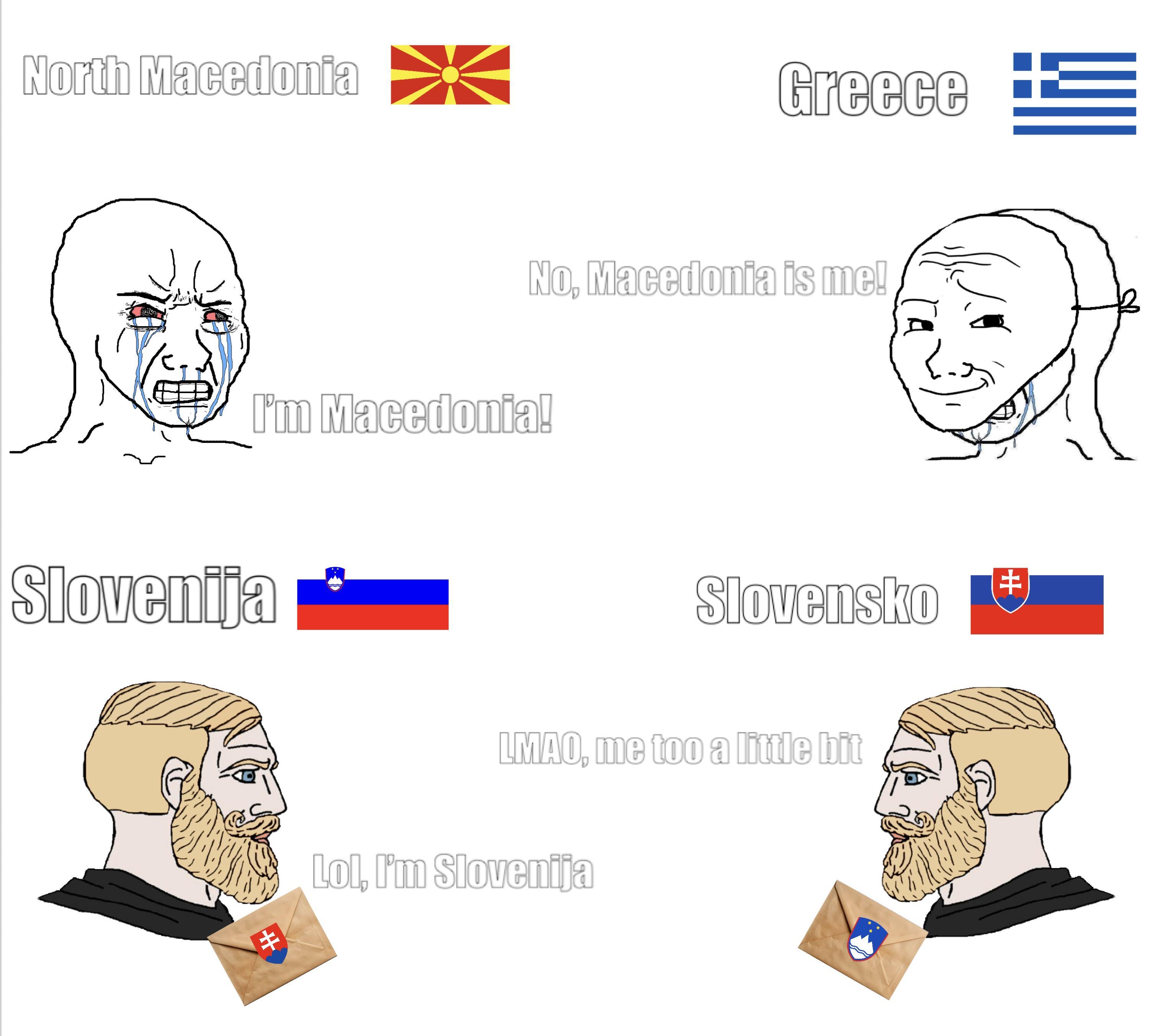 Slavic problems… — Current_Pea_897 Tags:Slovakia 1 comment Slovenija: lol, I’m Slovenija Slovakia: lol, I’m Slovenija Leave a ReplyYou must be logged in to post a comment.