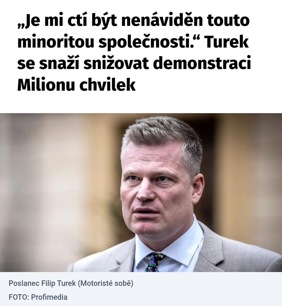3. Zajímavé, že to říká člověk, co právě minoritu společnosti reprezentuje 😅(6%?) Bylo to centrum Prahy v zimě. Chtěl bych vidět jeho podpůrce se za něj postavit. Ale počkat, oni se k němu nehlásí jinde, než na sítích (kde jsou strašní lobo-siláci-tomici)…. Jak bylo v jejich kampani. “Nikomu nemusite rikat, ze jste nas volili” (nebo tak nějak – ano, určitě bez diakritiky)… asi to stejně psali, když byli ožralí. Holt motoristi (v) sobě!