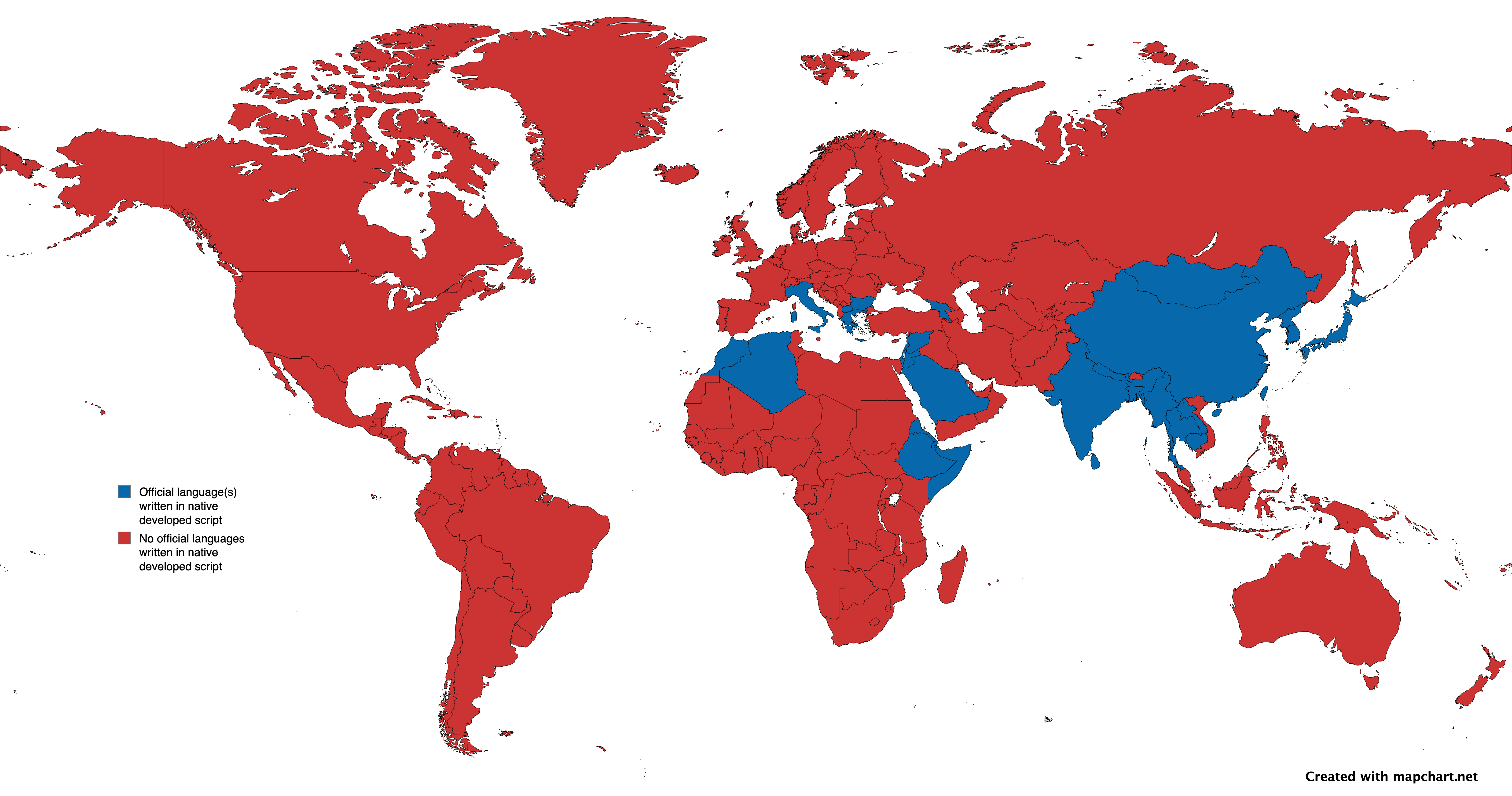 Държави, в които официалният език се пише предимно с писменост, създадена в рамките на съвременната им територия