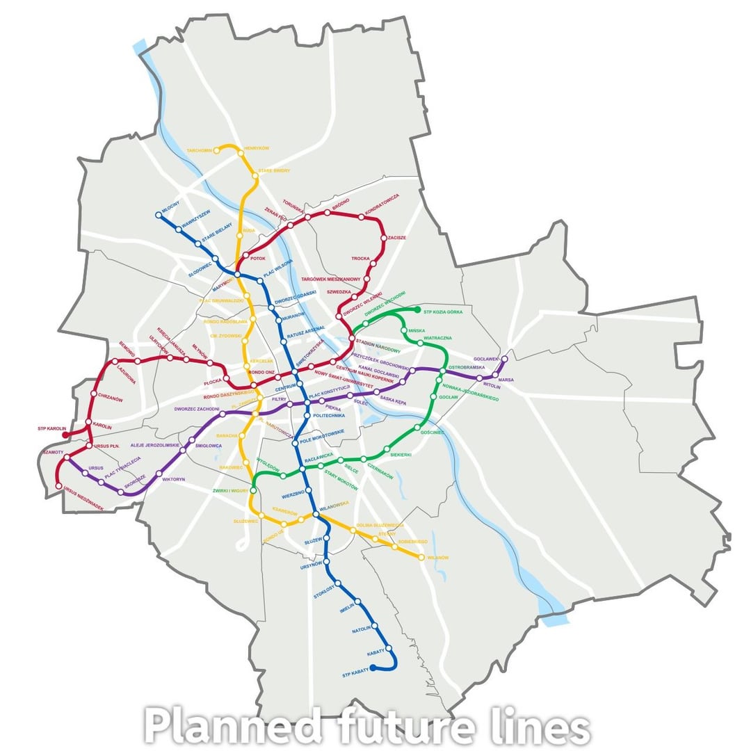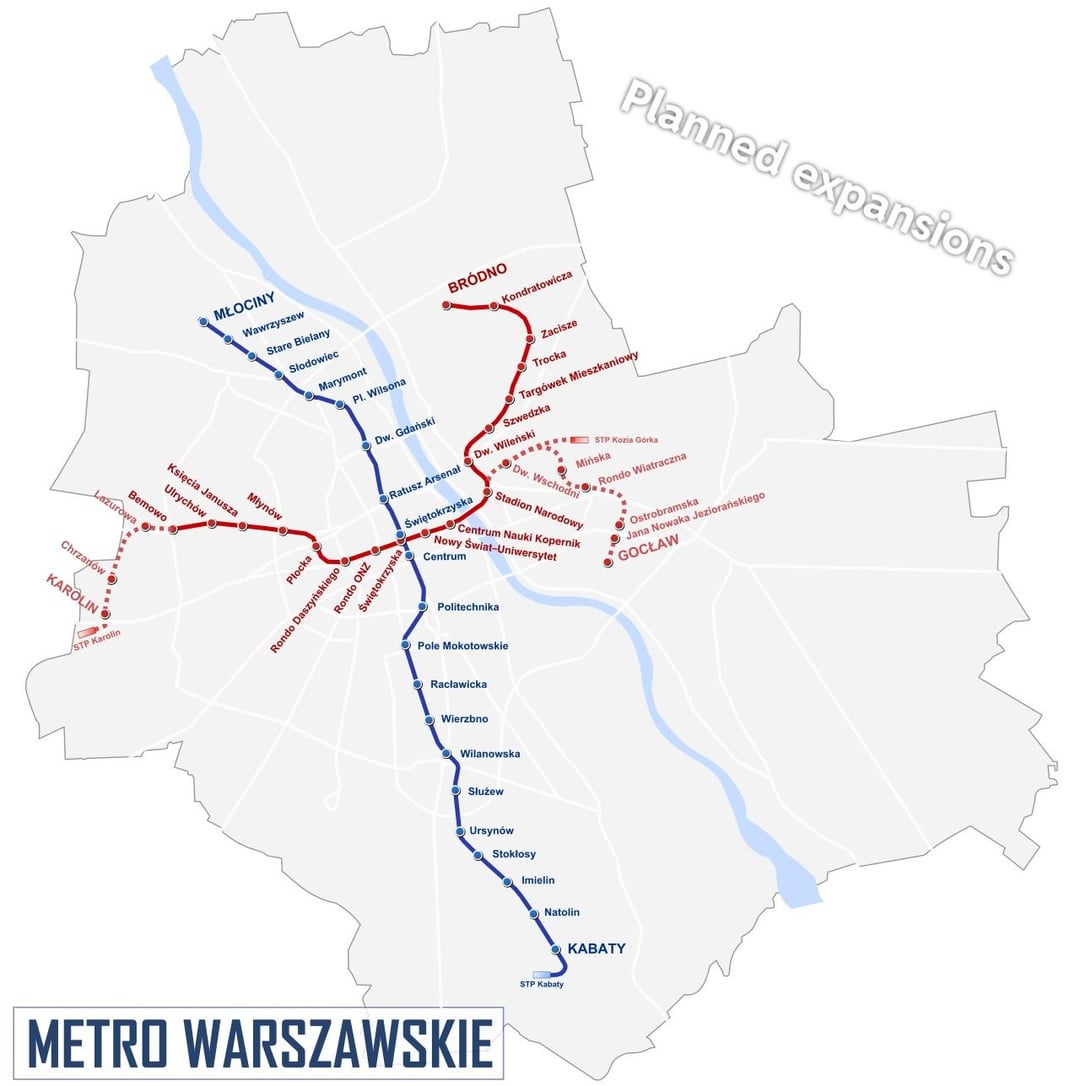 Dzień dobry! As we all know, the Warsaw metro has only 2 lines, but I saw on some maps that there are planned expansions of the first like (the one marked with red), as well as plans for future lines to be built. How true are these? And do you think that they will be achieved in the foreseeable future? In fact, how does Poland in general handle infrastructure projects? Do they get severely delayed and postponed until they finally finish them 1000 years later (like here, in Romania), or do they strive to build them quickly, but flawlessly? Lemme know. Here are some images of the metro that I was talking about.