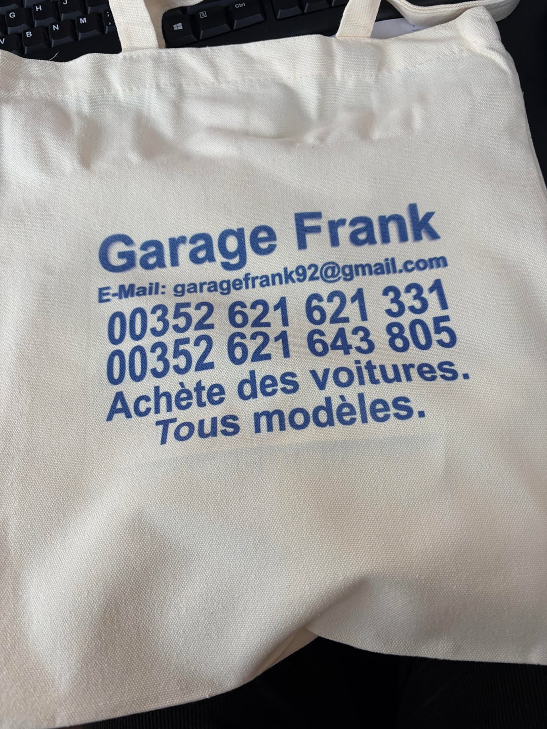 Nah, this one is actually an improvement. Give people free bags instead of giving them business cards they will throw away. Well played Garage Frank. I can get behind this. Now I want such a bag. At this point Garage Frank is so iconic that I would use that just as a joke.