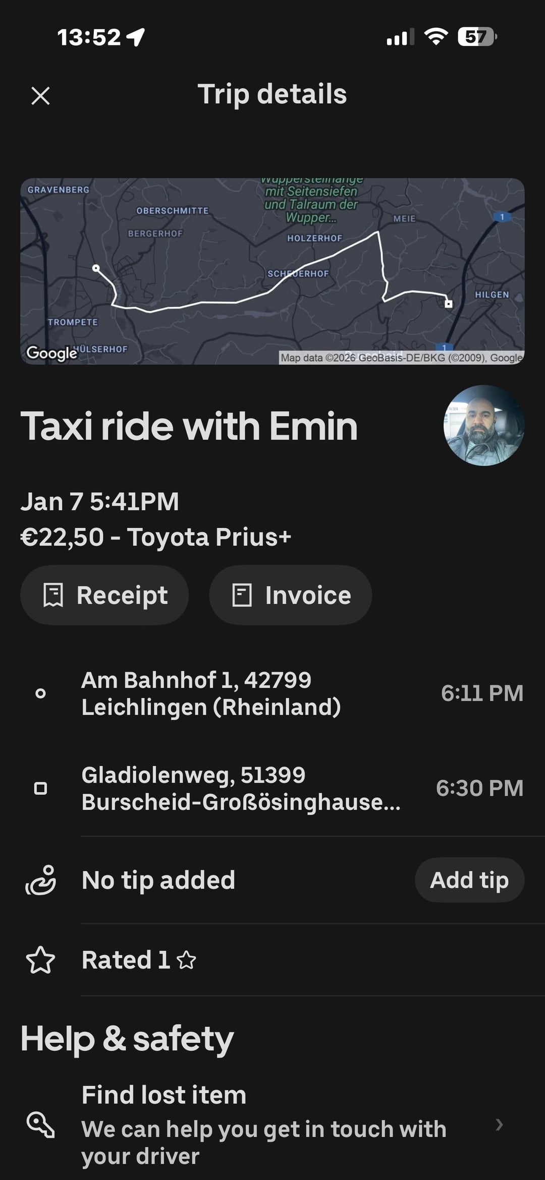 So the driver pocketed the €50 cash (tax-free, presumably) and let the app charge my card as well.