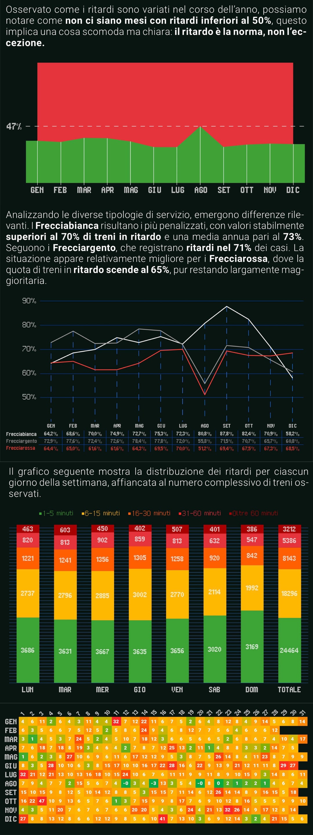 I dati che forniamo sono assolutamente unici: mai nella storia della rete dell’alta velocità italiana è stato prodotto un lavoro di queste dimensioni, un intero anno di dati analizzati, con oltre 90.000 treni, tutti quelli di Trenitalia che hanno viaggiato sulle linee AV dal 1 gennaio al 31 dicembre 2025 (Frecciarossa, Frecciabianca, Frecciargento).