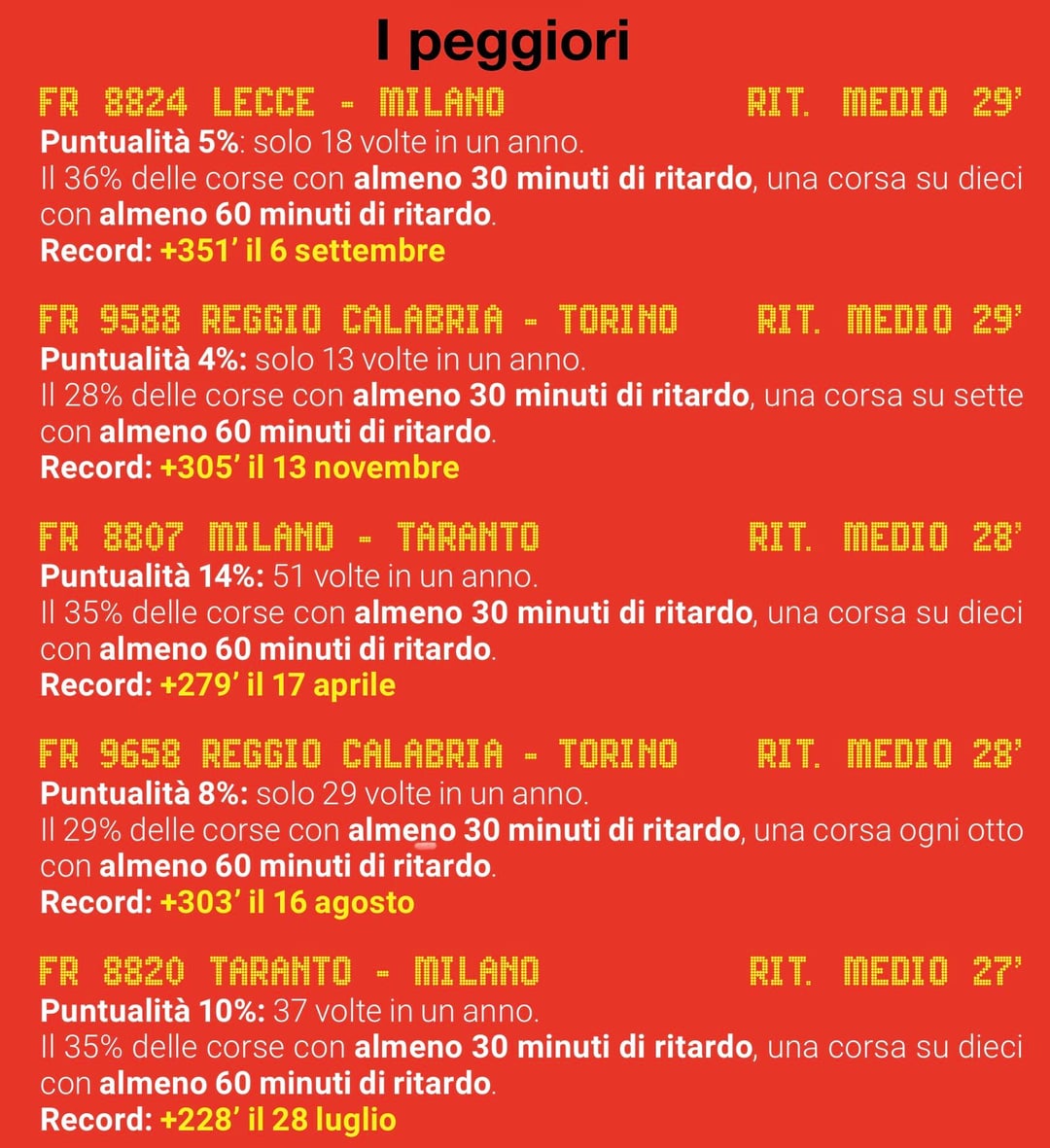 Trovate qua tutti i dati, ho riassunto con quelle 2 immagini ma c’è molto di più (inclusa la nota metodologica): DOSSIER ALTRAVELOCITÀ 2025 ‣ EUROPA RADICALE