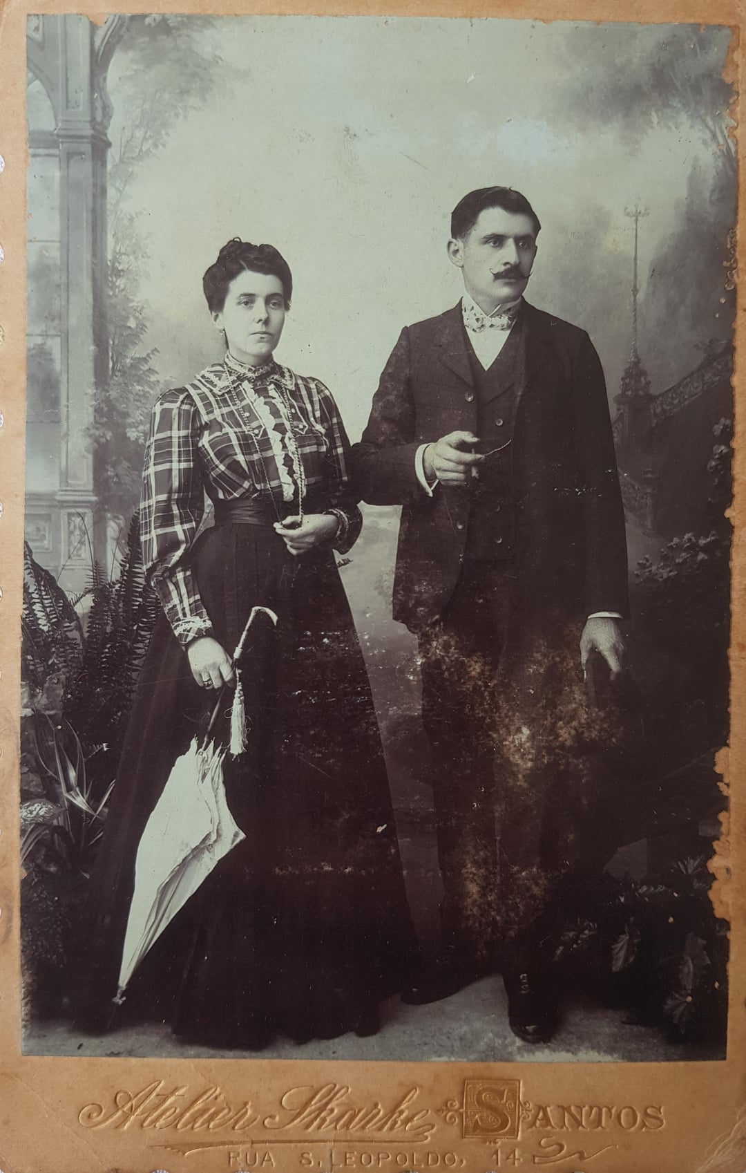 Dicho y hecho, ella partió sola rumbo a Brasil. Sin embargo, al llegar a Santos, para su sorpresa él la esperaba en el puerto. Había desertado y embarcado en un buque carguero, llegando con antelación. Se casaron de inmediato y se sacaron la foto que aún conservamos. La dejo aquí.