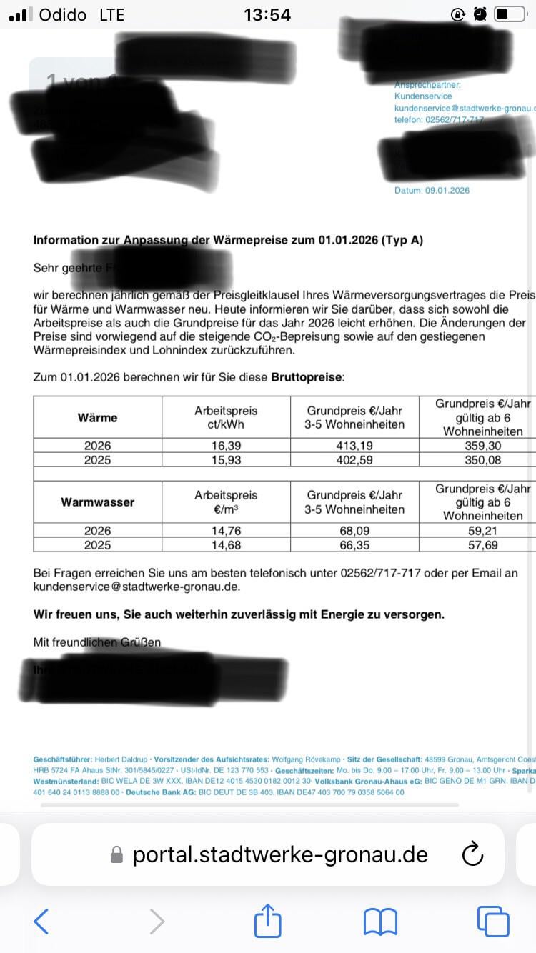 Is it normal for the stadtwerke to send a “preisannpassungschreiben” in the new year?