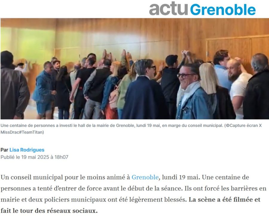 La vidéo de l’attaque, façon capitole soft, a fait le tour des réseaux sociaux. Elle illustre parfaitement l’exaspération et la révolte de tous les Grenoblois impactés depuis maintenant deux mandats par le dogmatisme et les outrances des écologistes.