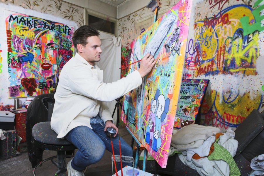 « C’est souvent une commande, une toile pour moi, une commande, une toile pour moi. Mais je ne refais jamais deux fois le même tableau », poursuit-il, son jeune âge tranchant avec l’image du peintre averti. Il faut dire que le Lyonnais n’a de cesse de bouleverser les codes. Y compris les siens, lorsque celui-ci eut la bonne idée d’ajouter de la peinture phosphorescente à ses œuvres d’art. Surprise totale à la nuit tombée. Et buzz assuré.