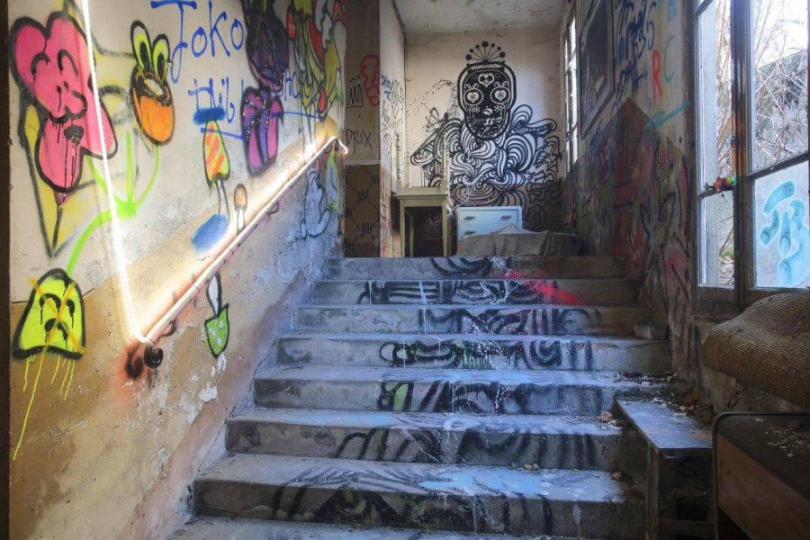 Un escalier dérobé pour rejoindre l’antre de l’artiste. Âmes sensibles, s’abstenir…