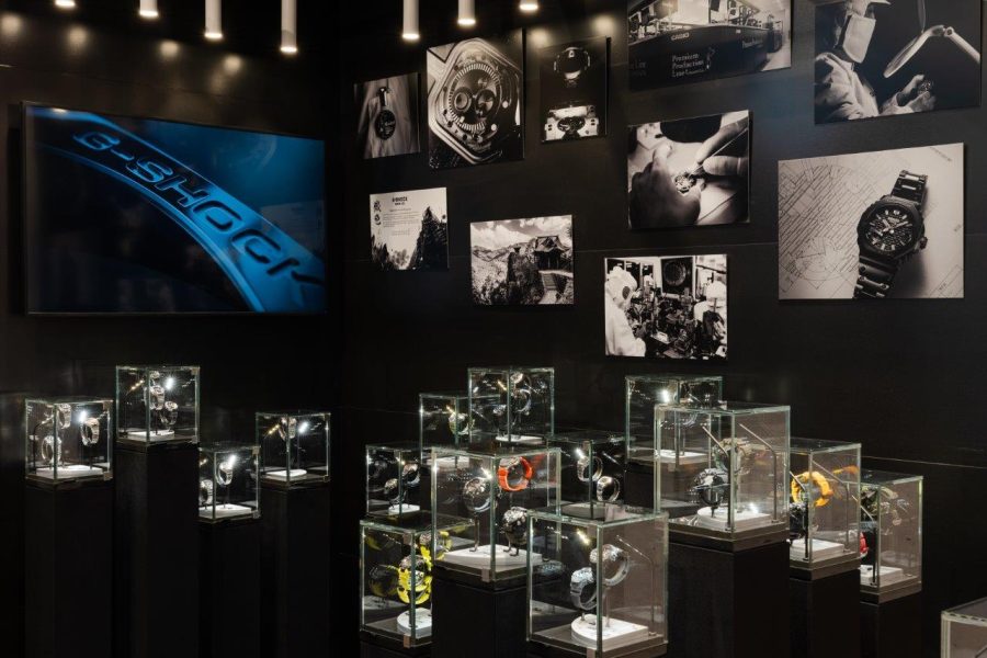 À l’image d’un atelier d’horlogerie contemporaine, l’espace rend hommage au savoir-faire des maîtres artisans de Yamagata, berceau japonais des montres haut de gamme signées Casio.