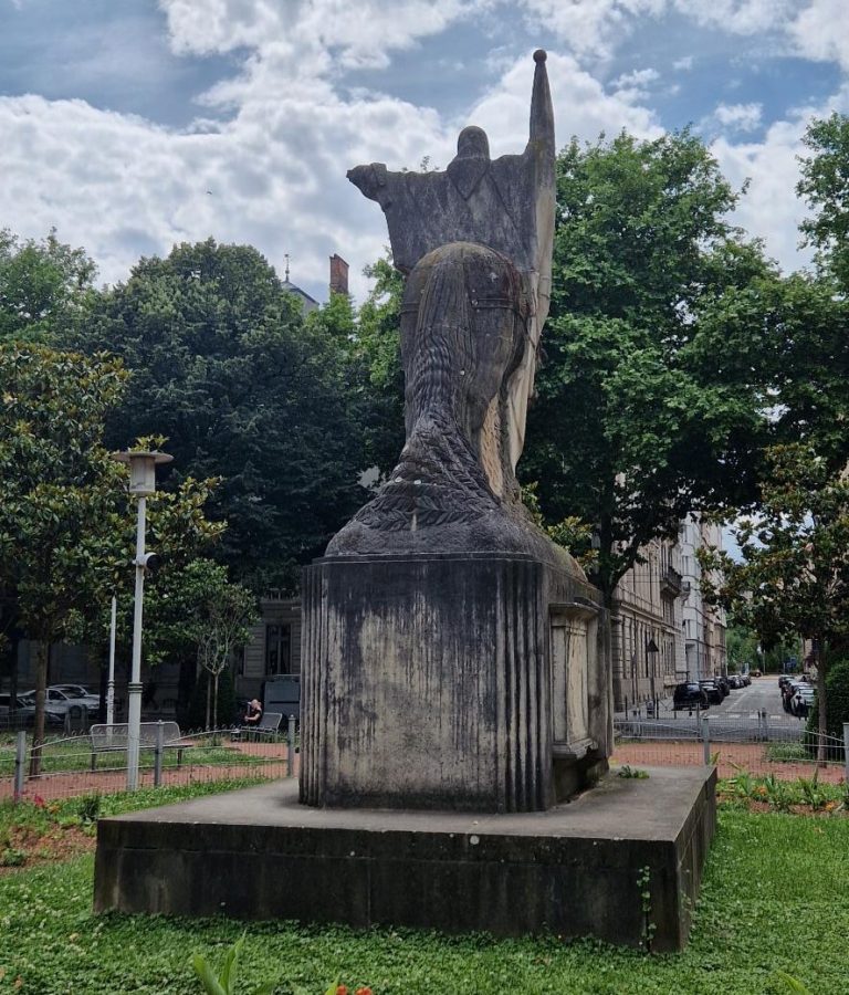 Voilà pour le contexte. Cent ans plus tard, alors que la Ville de Lyon envisage des projets de rénovation du square, matérialisé par la pose d’un panneau informatif en date du 19/02/2025, curieusement rien ne concerne l’œuvre qui en est l’épicentre. Il est prévu de déposer la clôture d’enceinte, de créer des massifs d’arbustes et d’entamer « la réfection du stabilisé des allées ».