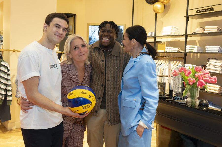 10. Le joueur de Volley Ball Steve Adu Kyeremeh entouré de Théo Delaye, Marie Dufour,et Célina Lapeira (Scotch & Sodas).