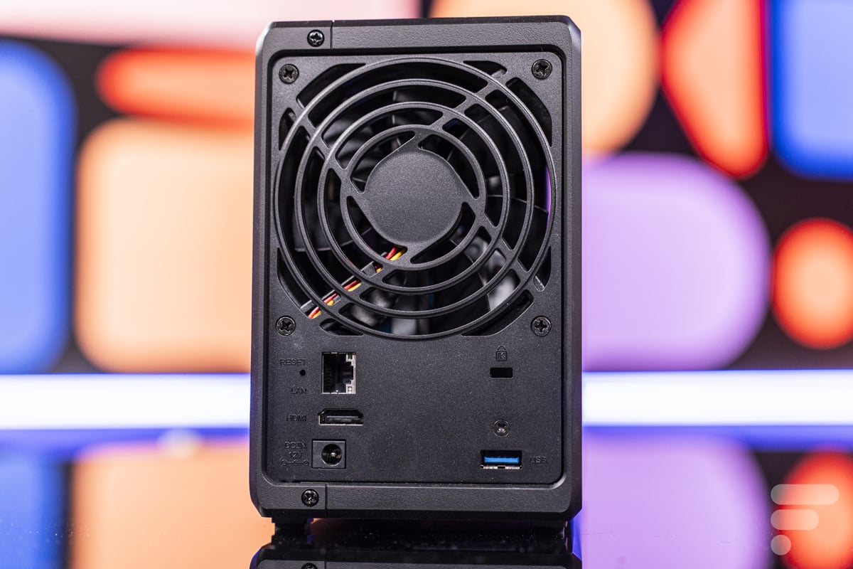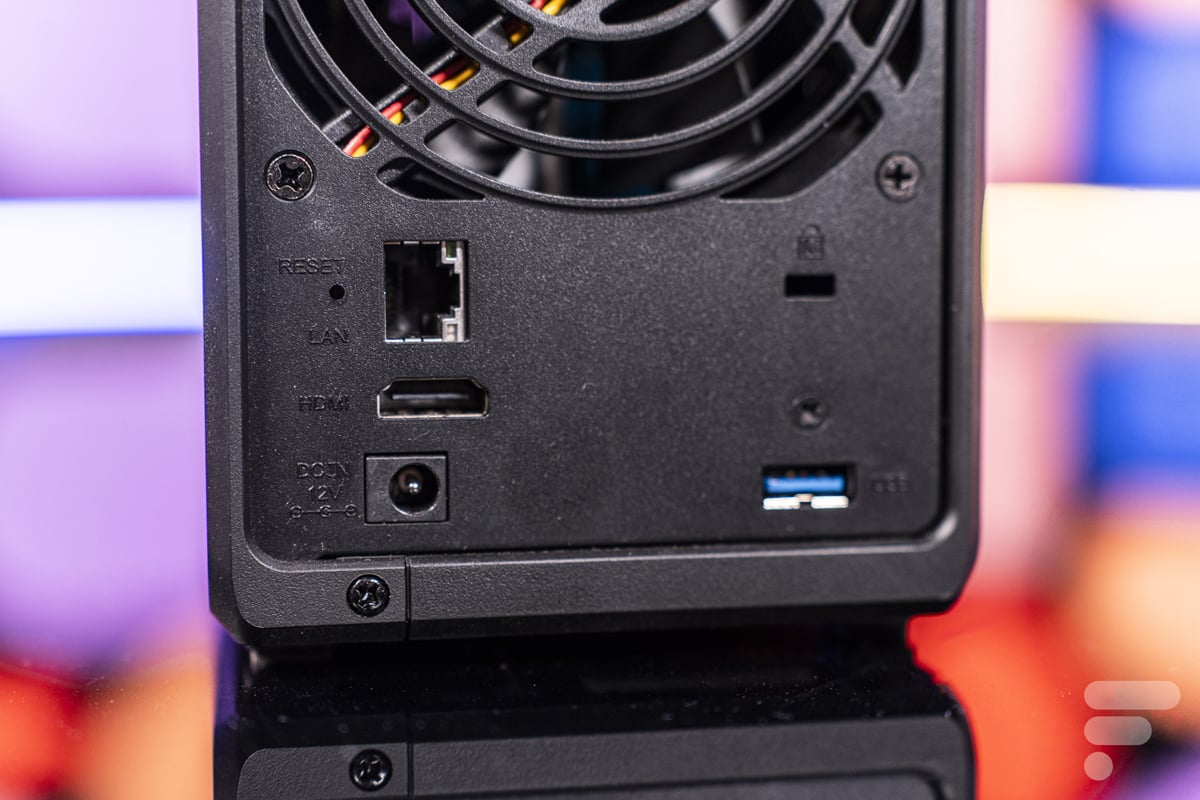 À l’arrière, nous trouvons un unique port RJ45 à 1 Gb, un port USB-A 3.2, et un surprenant port HDMI. L’ensemble profite d’une excellente qualité de fabrication, avec un assemblage simplement impeccable.