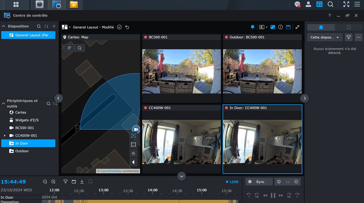 Le Centre de contrôle est le cœur de votre système NVR. Il permet de visualiser toutes vos caméras sous forme de mosaïque, et même de créer une carte de votre environnement où vous pouvez placer des icônes représentant les caméras. Un simple clic sur une icône recentre l’affichage sur la caméra correspondante.