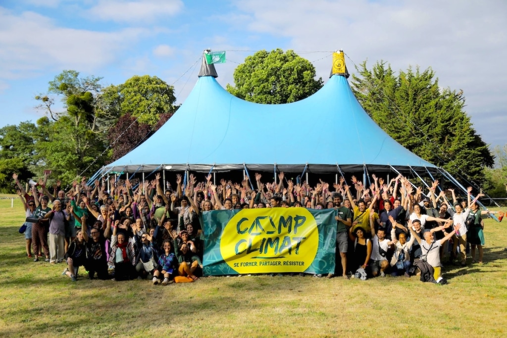 Ce camp climat national est installé depuis samedi 26 juillet et fermera dimanche 3 août. Il est basé à la Papotière, un domaine qui, en dehors de l’été, accueille des jeunes en difficulté d’intégration sociale. Et le camp n’avait pas eu lieu sous cette forme depuis 2019. Son objectif : «Apprendre [aux participant·es à concilier] mobilisation citoyenne, plaidoyer local, action non-violente de désobéissance civile et construction de listes citoyennes et participatives», à l’approche des élections municipales de 2026, indique un prospectus distribué à l’entrée. Une bénévole répète à chaque arrivant·e (et aux journalistes) les bons comportements à adopter et le numéro d’urgence en cas d’agissement problématique.