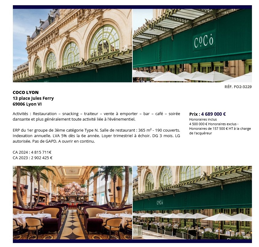 « S’ils avaient proposé des tarifs normaux, c’est-à-dire acceptables par les Lyonnais, ils nous auraient tués », évoquent plusieurs restaurateurs du 6. Hélas pour Coco, la fréquentation ne fut donc jamais suffisante pour couvrir un loyer exorbitant de 369 000€ annuel, auquel s’ajoutent 5% de hausse chaque année et près de 58 000€ de charges.