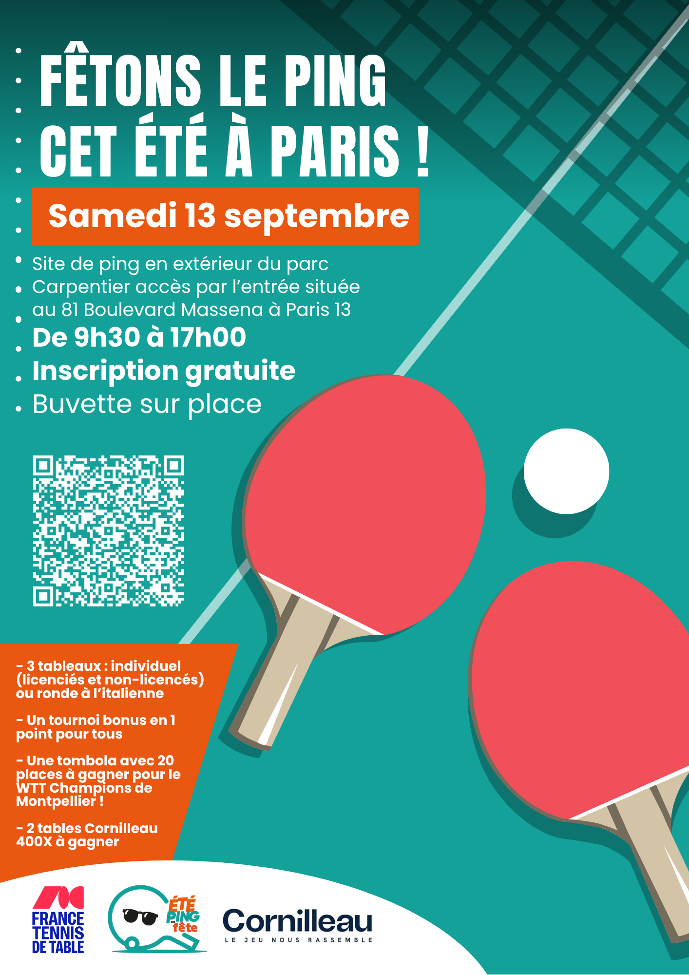 Ne manquez pas cette grande fête du ping pour clôturer l’été en beauté ! Que vous soyez joueur aguerri ou simple curieux, rendez-vous à Paris le 13 septembre !