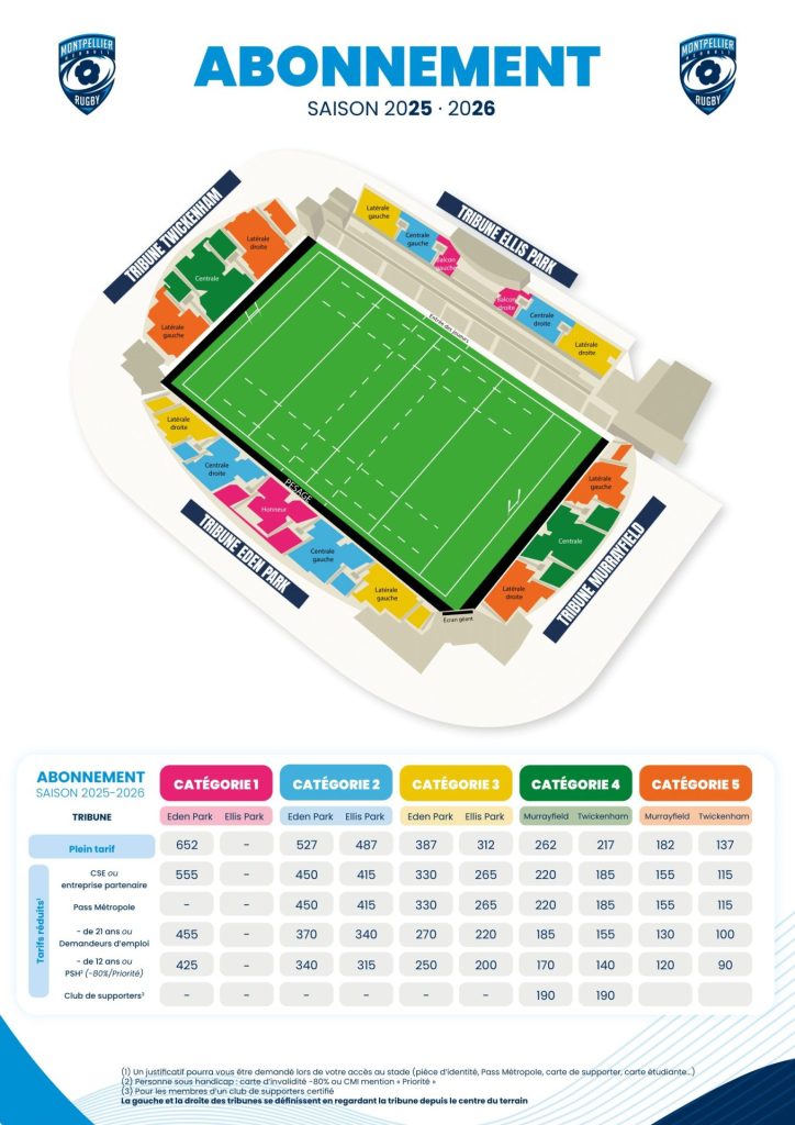 - Garantie de la même place à l’année pour les matchs de la phase régulière du championnat de France et de Coupe d’Europe (Champions ou Challenge Cup).