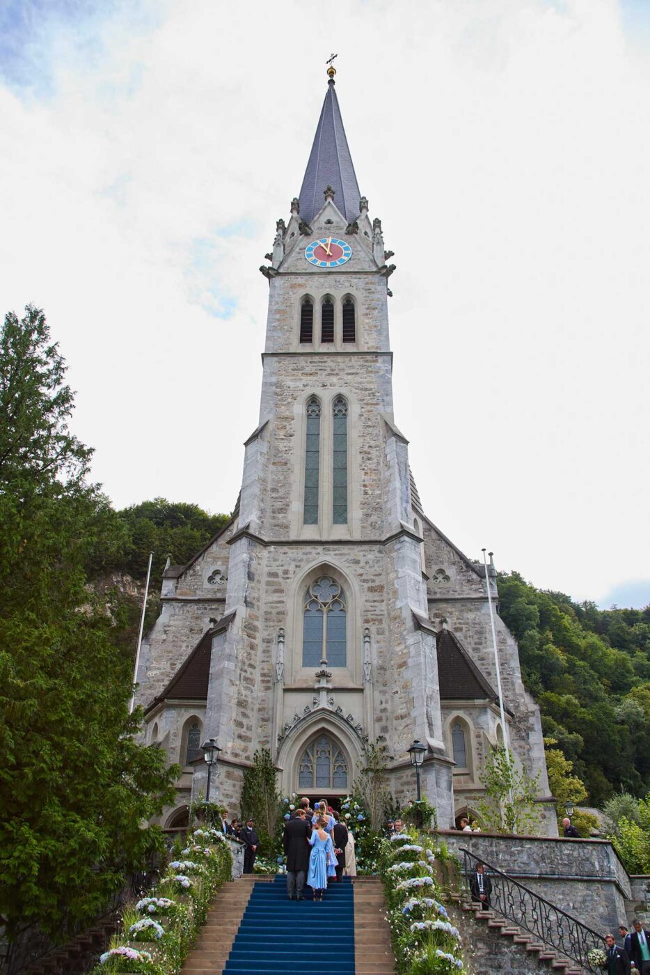 L’église Saint-Florin de Vaduz n’a été élevée au rang de cathédrale qu’en 1997. Cette petite cathédrale était pleine à craquer et était réservée aux proches de la famille. L’évêque du diocèse autrichien de Feldkirch, Mgr Benno Elbs, a célébré le mariage du couple. Depuis le départ à la retraite de Mgr Wolfgang Haas, le poste d’archevêque de Vaduz est vacant et l’évêque de Feldkirch assure la fonction d’administrateur apostolique de l’archidiocèse.