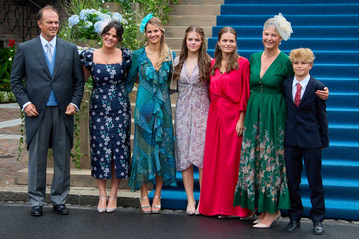 La princesse Tatjana de Liechtenstein (en vert), tante de la mariée, avec son époux Philipp von Lattorff et cinq de leurs sept enfants (Photo : Jean-Claude Ernst/LUXPRESS)