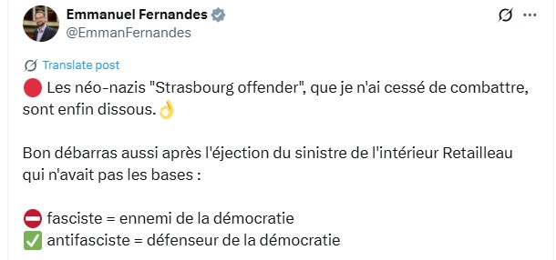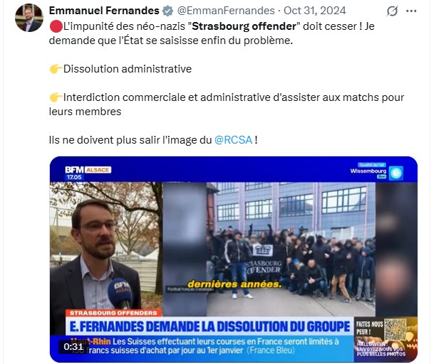 Emmanuel Fernandes, député du Bas-Rhin (LFI) a salué la décision. « Les néo-nazis « Strasbourg Offender », que je n’ai cessé de combattre, sont enfin dissous », a-t-il déclaré sur son compte X.
