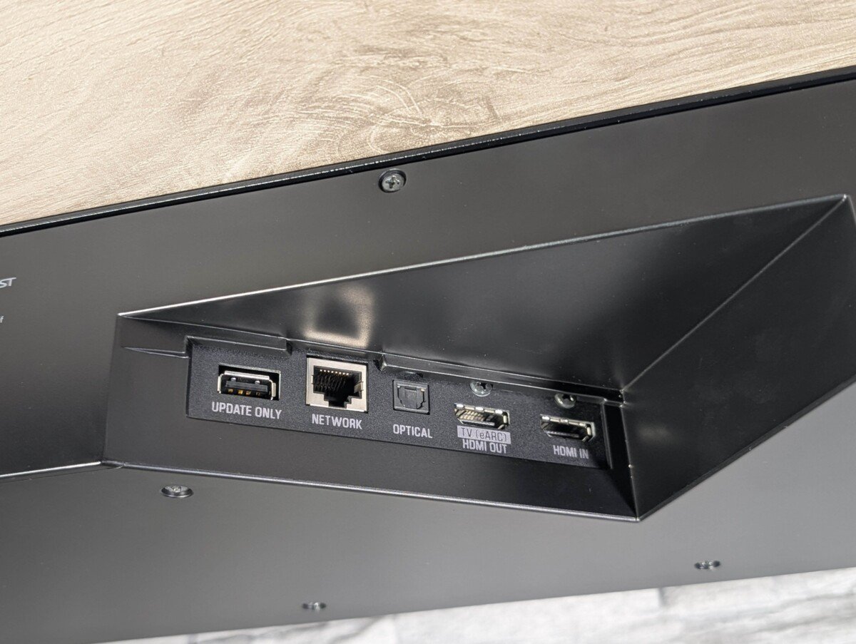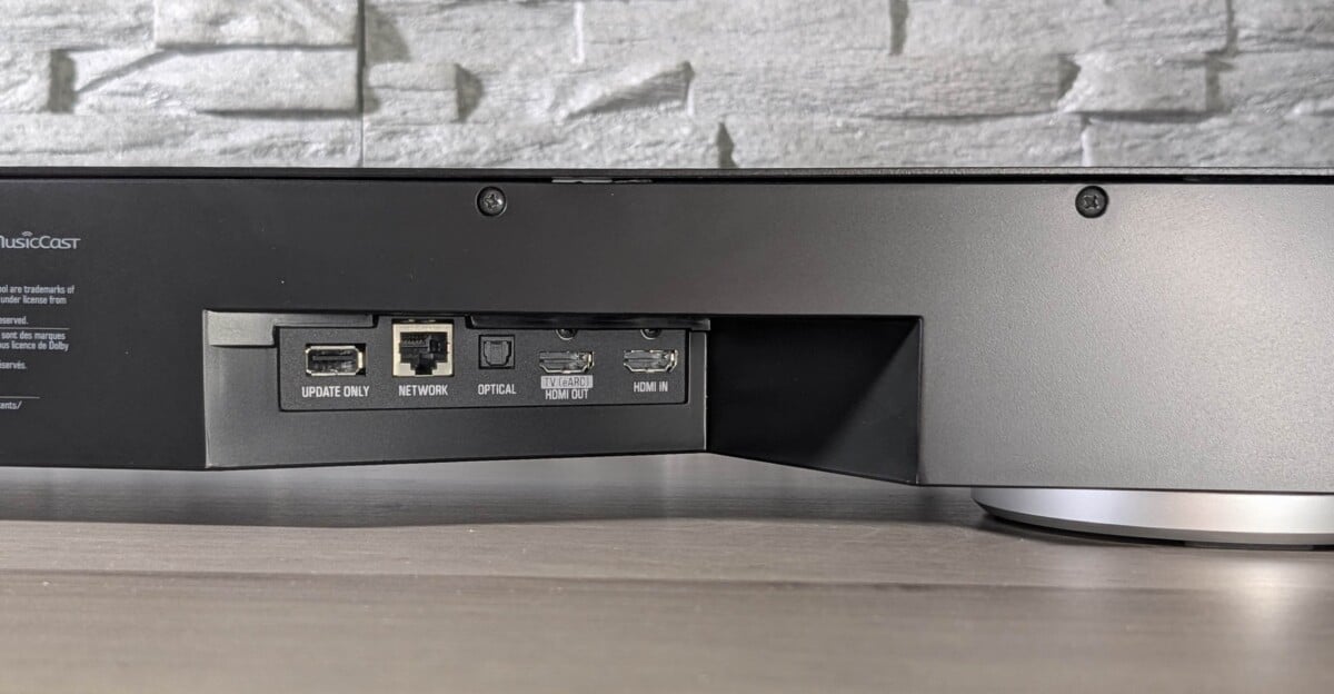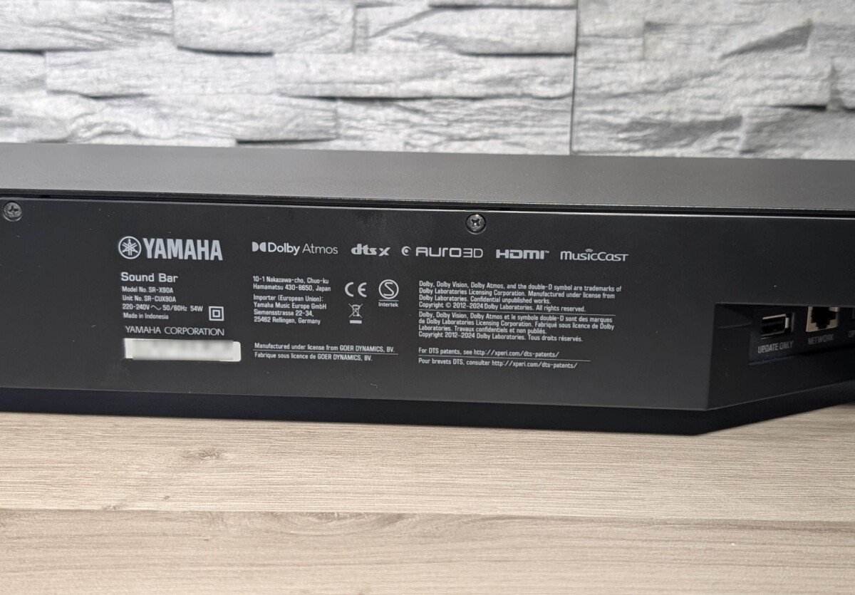 La connectique de la Yamaha True X Surround 90A couvre les usages les plus courants sans pour autant atteindre la perfection. Ainsi, on trouve deux ports HDMI, dont l’un compatible eARC, ainsi qu’une entrée optique très appréciée des utilisateurs de lecteurs Blu-ray et consoles plus anciennes. On retrouve bien sûr Bluetooth et Wi-Fi, éléments indispensables pour le streaming.