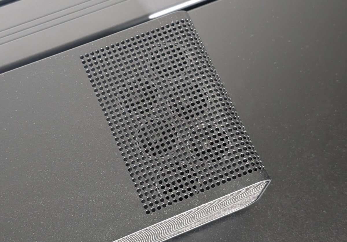 Yamaha a intégré pas moins de deux batteries de six tweeters aux extrémités, chacun piloté par un amplificateur dédié. Mieux, via l’application, il est possible de modifier l’inclinaison de ces tweeters d’élévation pour adapter la scène sonore à l’acoustique de la pièce.