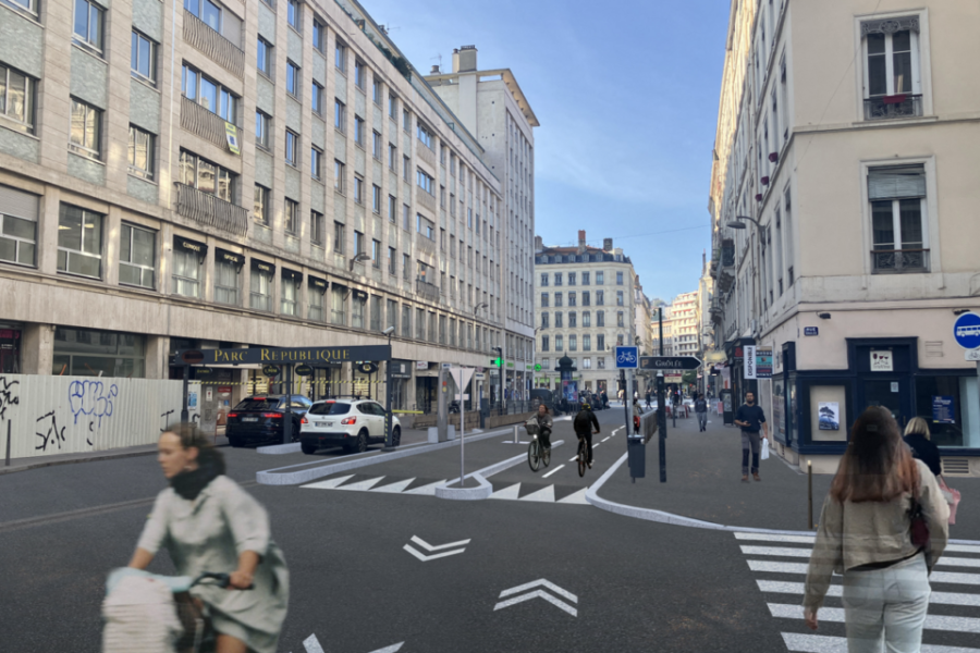 La traversée de la rue de la République, entre les blocs de béton, avaient beau relever du défi, la rue Childebert se révélait être l’une des dernières liaisons rapides entre le Rhône et la Saône. Désormais, comme sur la place Bellecour, la situation a tout d’une quadrature du cercle.