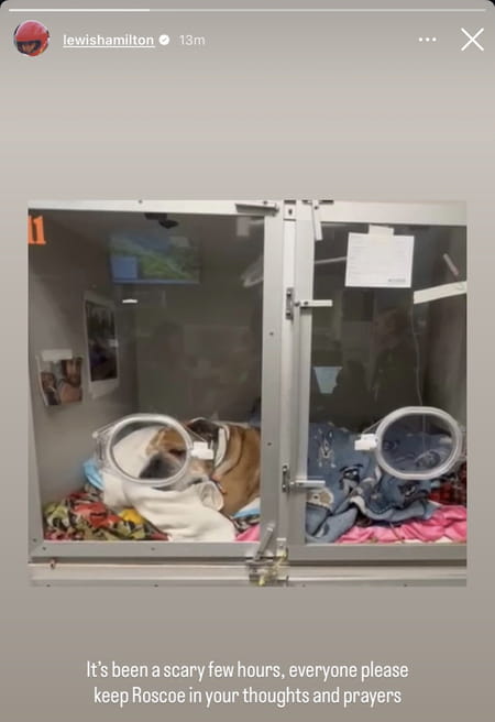 Lewis Hamilton a publié une photo de ce dernier chez le vétérinaire sur laquelle le bouledogue, âgé de plus de 12 ans, apparaît vraiment très mal en point. « Ces dernières heures ont été effrayantes. Je vous demande à tous de garder Roscoe dans vos pensées et vos prières » a lancé le pilote Ferrari ce mercredi 24 septembre.