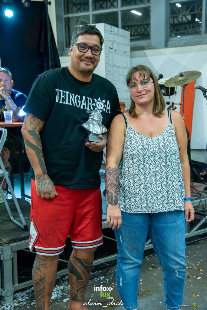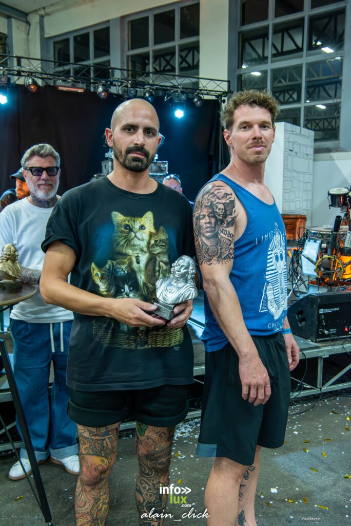Et pour clôturer cette journée exceptionnelle, plusieurs prix ont été remis lors de la cérémonie de clôture. Parmi eux, la petite pièce a été remise à l’artiste dont la création s’est distinguée par sa finesse et son originalité. La catégorie Ornemental a permis de mettre en valeur le tatouage le plus esthétique et harmonieux dans cette thématique, tandis que le prix Best of Day a été décerné au tatouage considéré comme le plus beau, le plus marquant, ou celui qui a su captiver le jury et le public.