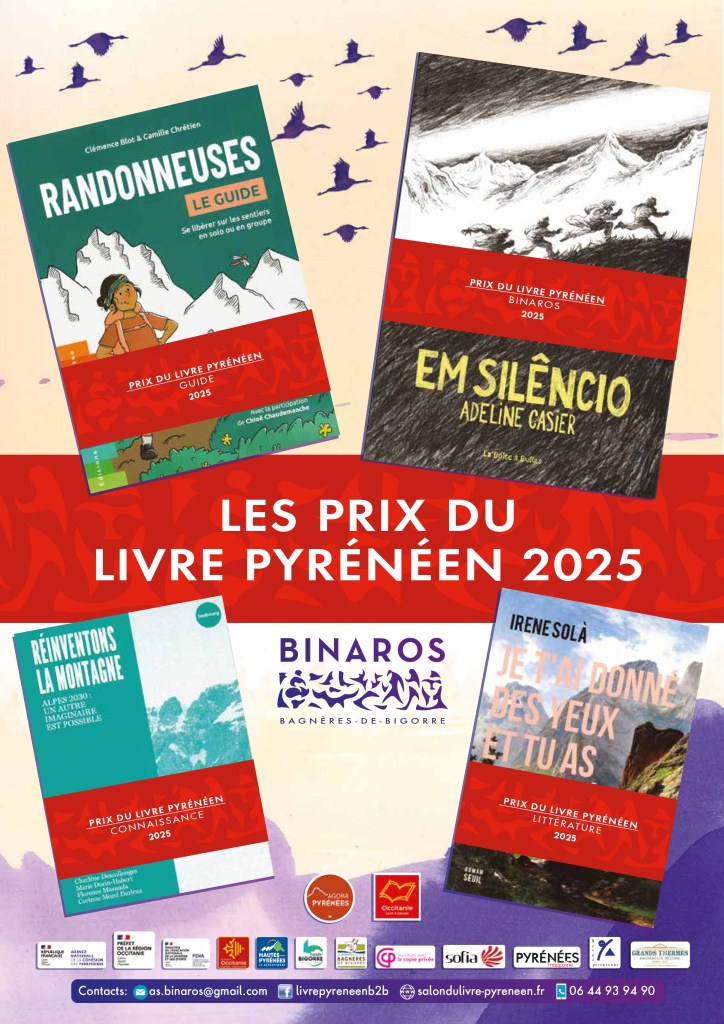 Prix ​​du Livre Pyrénéen – Binaros 2025 qui met en valeur un ouvrage original traitant des Pyrénées, à la marge des genres déjà définis. Il permet de récompenser les livres de jeunesse, de photos ou d’art, des livres atypiques… a été attribué à : « Em silêncio » d’Adeline Casier, Editions La boîte à Bulles (2025)
