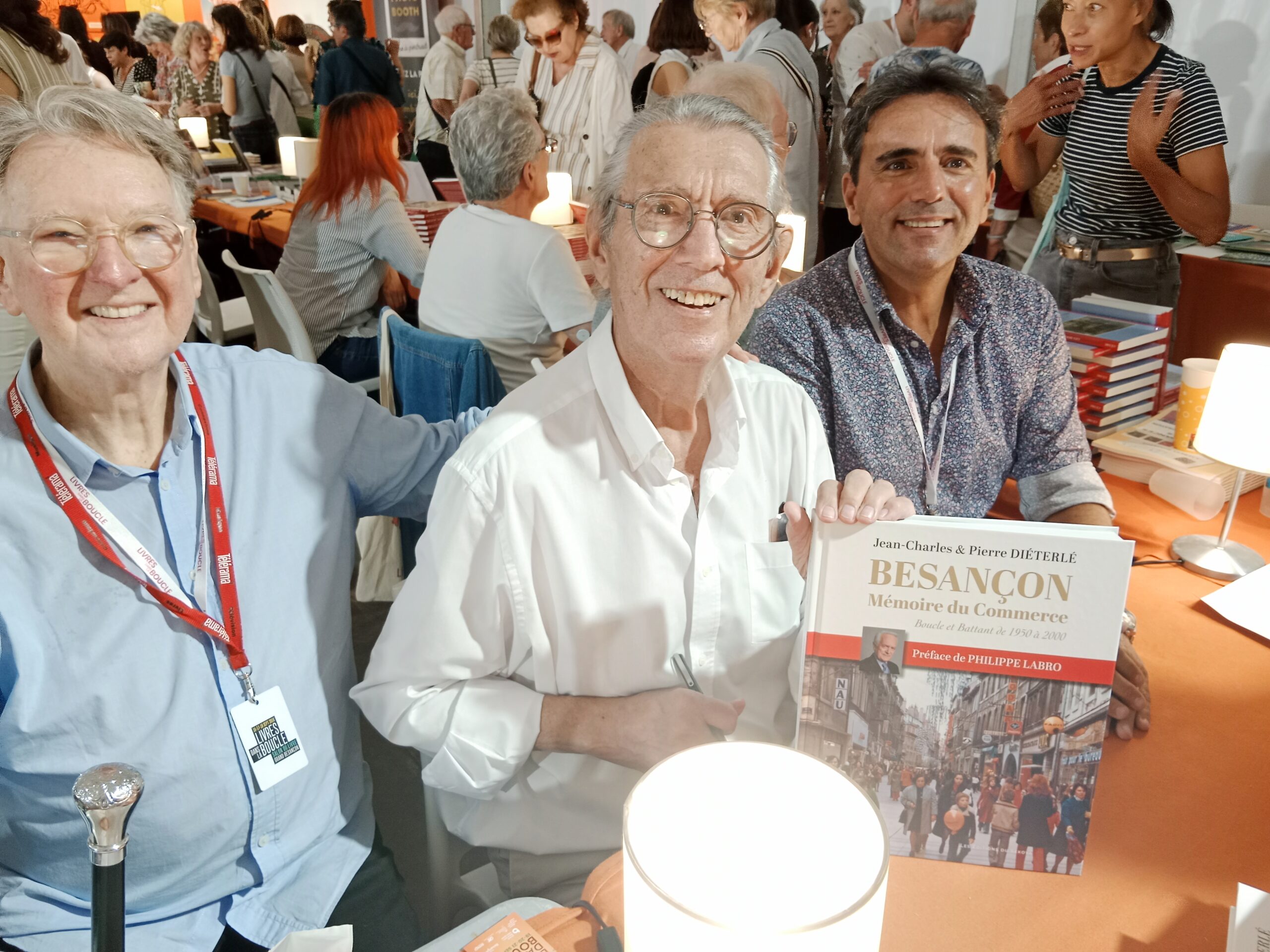 Alain Mendel Dirigeant des Éditions Sekoya, Jean-Charles et Pierre Diéterlé lors de la présentation de leur livre « Besançon, mémoire du commerce 1950-2000 » au salon Livres dans la Boucle ©YQ