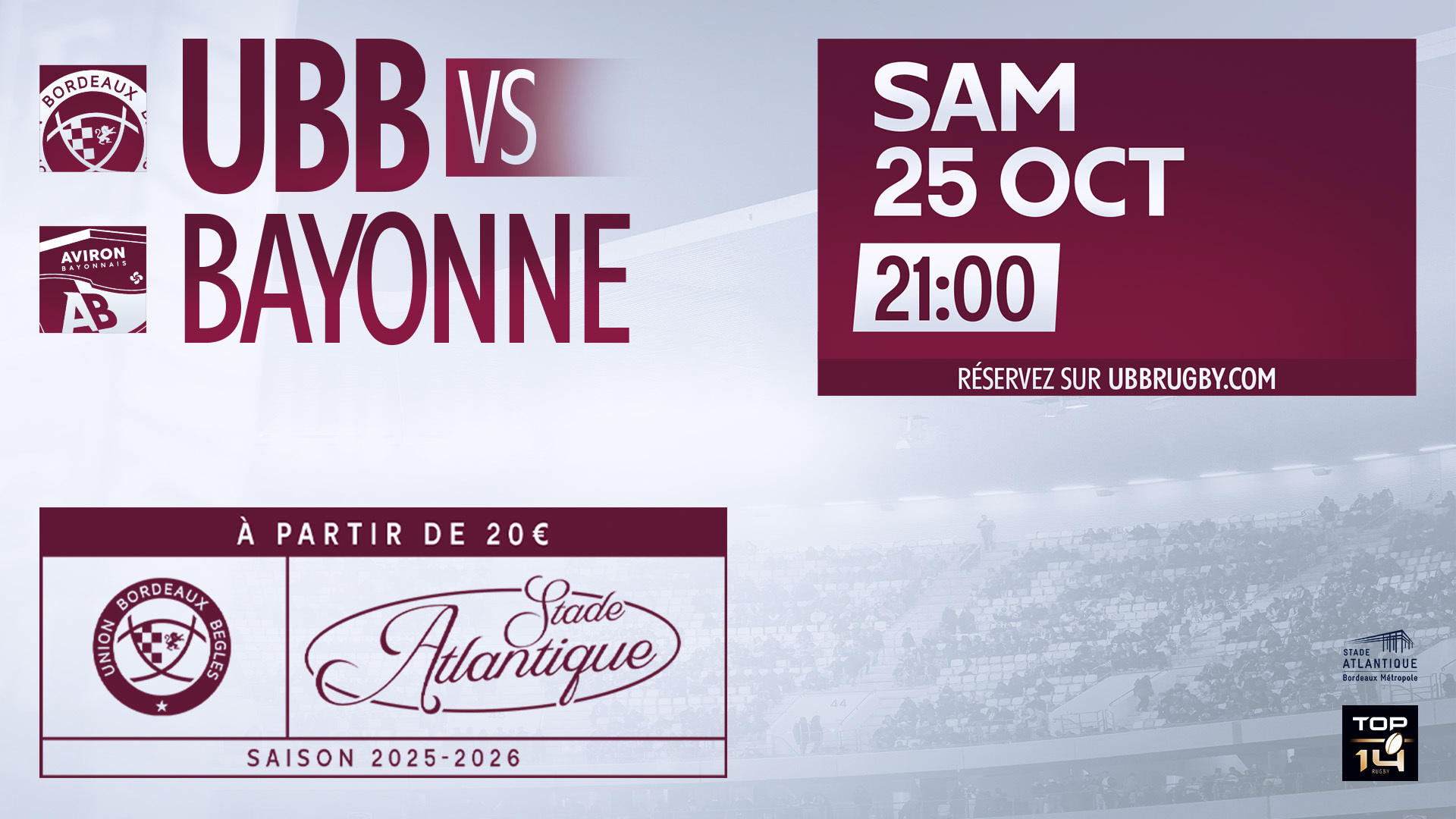La billetterie pour les réceptions de Bayonne et Toulouse au Stade Atlantique Bordeaux Métropole est désormais ouverte ! Pour ces deux affiches de gala, profitez d’un pack spécial incluant les deux rencontres. Et si vous ne souhaitez assister qu’à la réception de l’Aviron Bayonnais, la billetterie de ce match est également disponible.