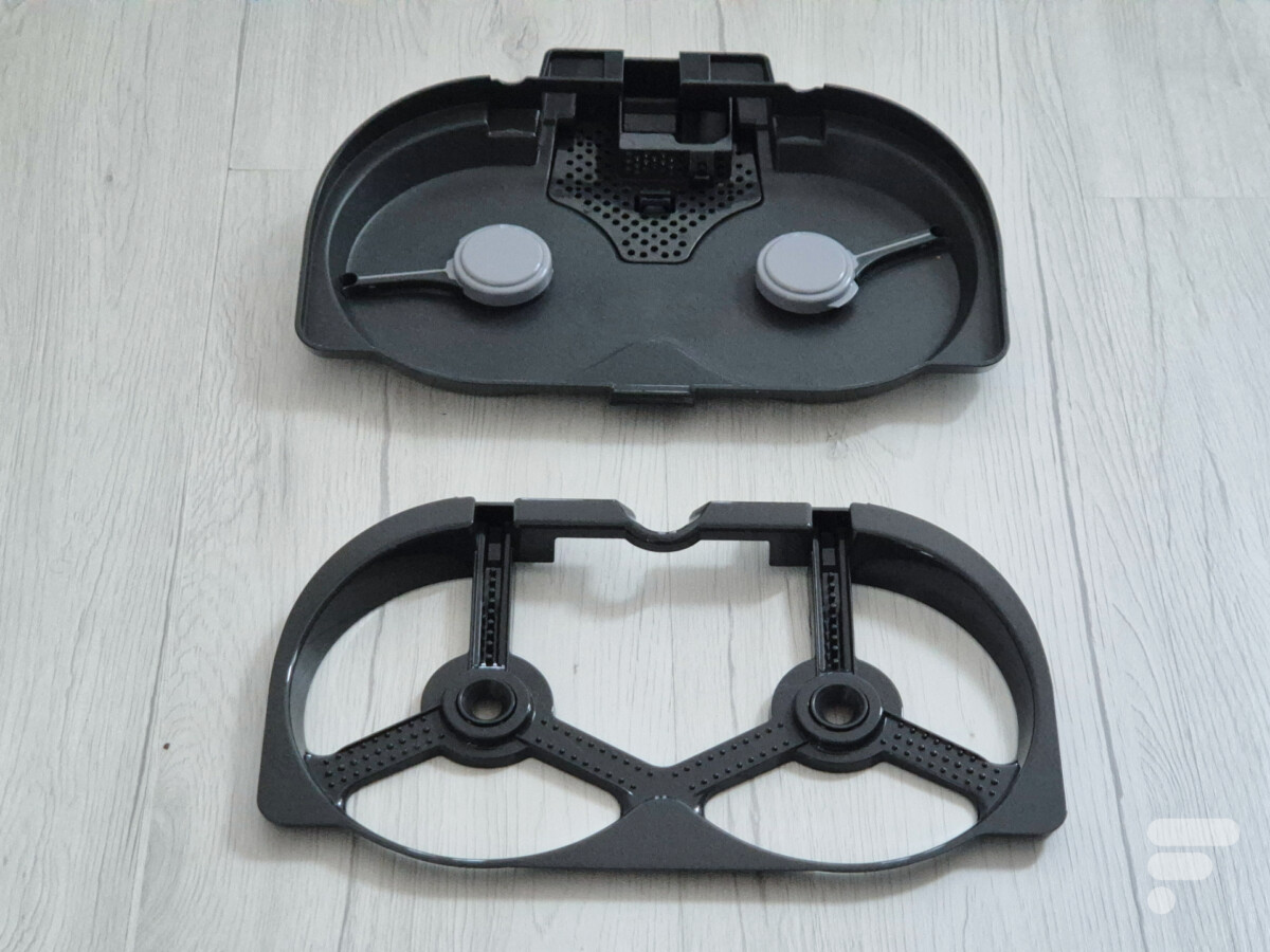 La partie inférieure de la station d’accueil comprend notamment une planche de lavage amovible, équipée de picots et raclettes, permettant à la fois de nettoyer les serpillières, mais aussi de maintenir la base propre. Cette approche est assez surprenante, puisque Roborock a pour habitude d’utiliser une serpillière vibrante sur ces modèles haut de gamme. C’est d’ailleurs la principale différence entre le Saros 10R et le Saros 10, ce dernier étant effectivement équipé d’une serpillière vibrante et d’un dôme LiDAR.