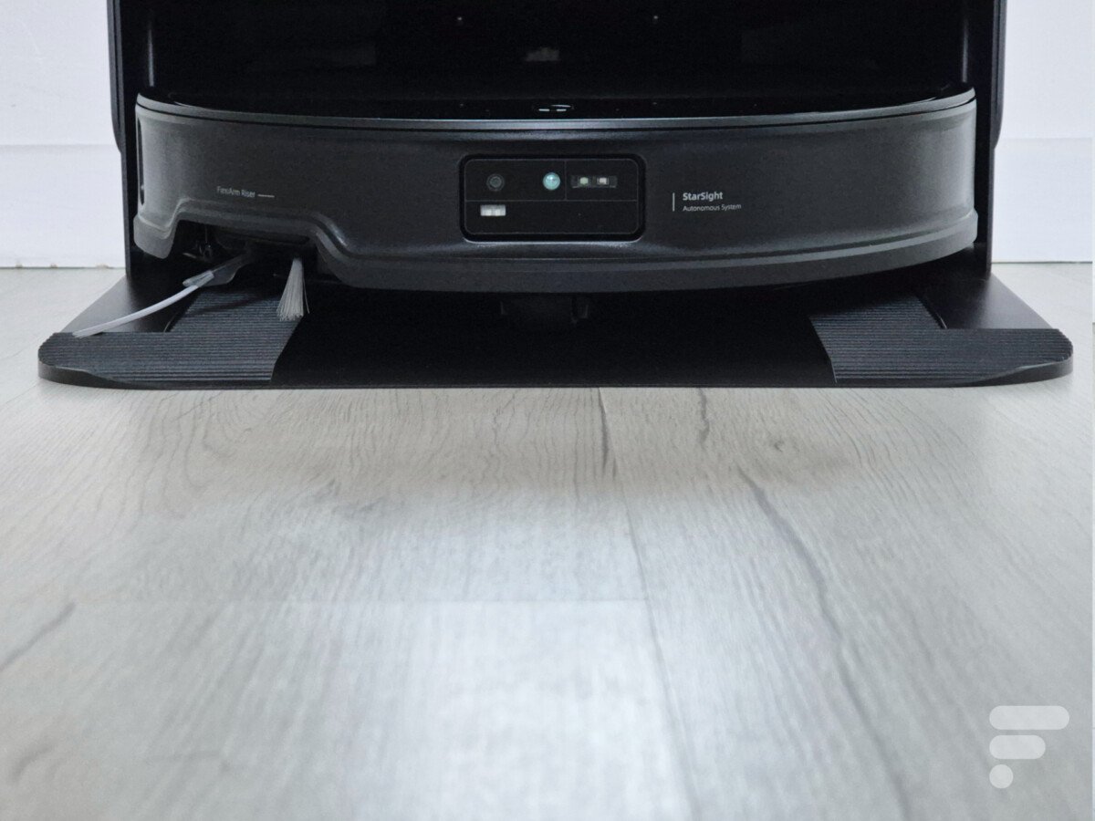 Le Saros 10R fait donc l’impasse sur le dôme LiDAR sur le dessus, ce qui en fait l’un des robots aspirateurs les plus fins du marché, avec seulement 7,98 cm de hauteur. À la place, il est équipé de capteurs 3D et d’une caméra, qui lui permettent de se repérer, mais aussi de détecter la saleté et les obstacles.