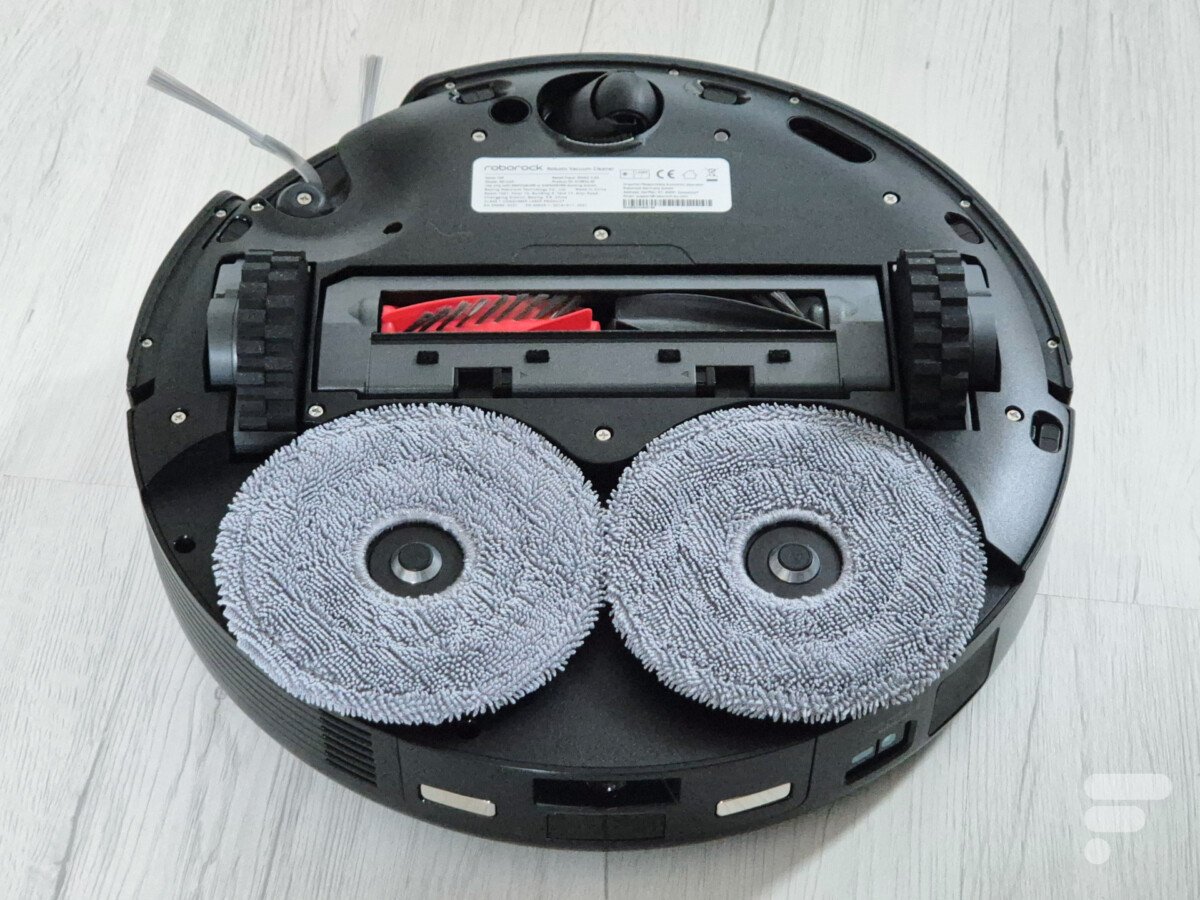 Pour le nettoyage humide, le Roborock Saros 10R utilise deux patins de lavage rotatifs. Ceux-ci sont relevables et détachables, garantissant qu’ils ne touchent le sol que dans les pièces où le robot lave les sols.