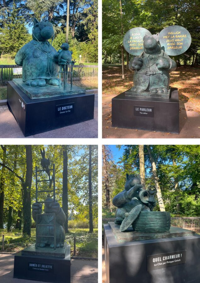 Né en 1983 de la plume de Philippe Geluck « d’une façon romancé », le représentant avec sa femme « sous forme de chat », sa création intitulée Le Chat est devenu un compagnon familier pour des millions de lecteurs. « Il touche tellement de gens, il est entré dans la vie des gens » confie l’artiste, quelques minutes avant qu’un passant lui avoue à quel point Le Chat l’a accompagné durant son enfance.