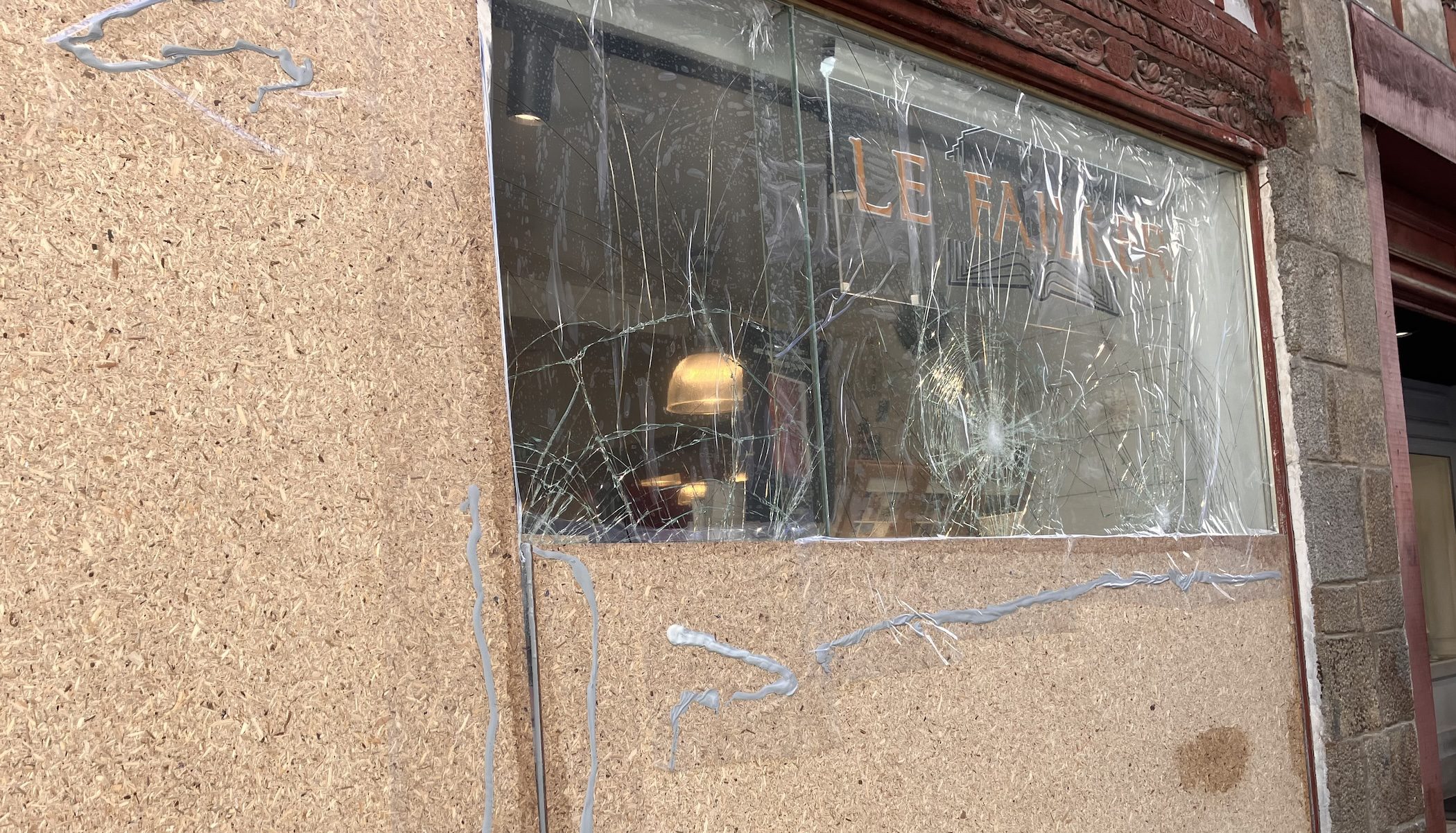 Dans la nuit du dimanche 28 au lundi 29 septembre, après minuit, un ou plusieurs individus ont pris pour cible la librairie Le Failler, rue Saint-Georges, à Rennes. La vitrine a été frappée à une dizaine de reprises, laissant des impacts désormais cachés derrière de grands panneaux en bois. Sur place, un potelet en métal a été retrouvé : il aurait servi à commettre les dégradations.
