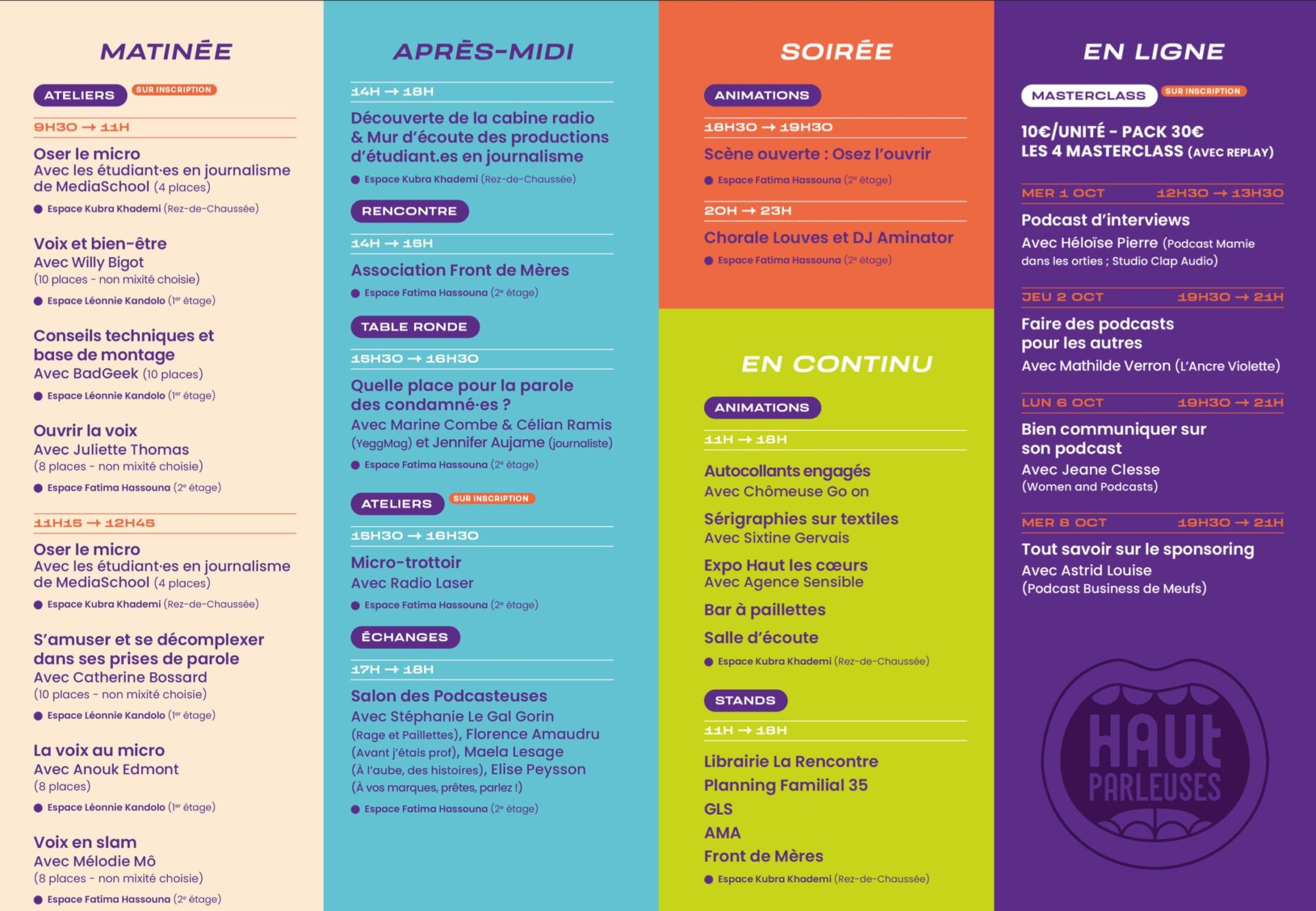 En amont de la journée du 11 octobre, Haut-Parleuses propose également :