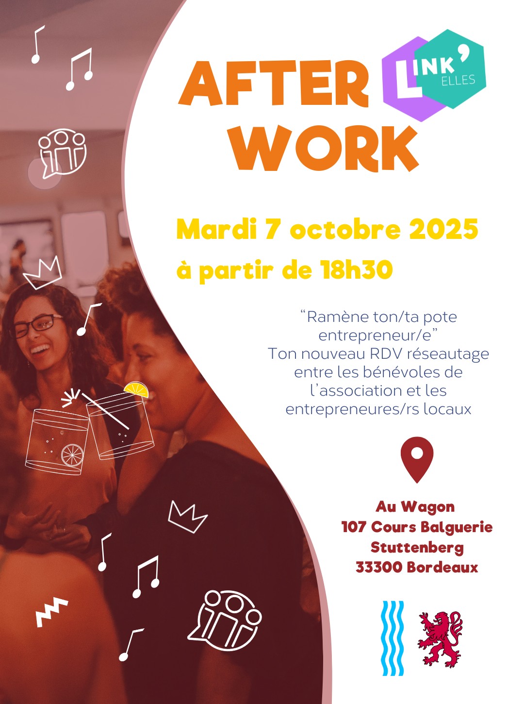 Tu as un projet qui dort dans ton carnet ou juste l’envie de rencontrer d’autres entrepreneurs de ta région alors cet afterwork est fait pour toi Link’Elles débarque partout en France et Bordeaux fait partie de la 1ʳᵉ édition nationale qui réunit Paris Toulouse Lyon Metz et bien sûr la Nouvelle-Aquitaine.