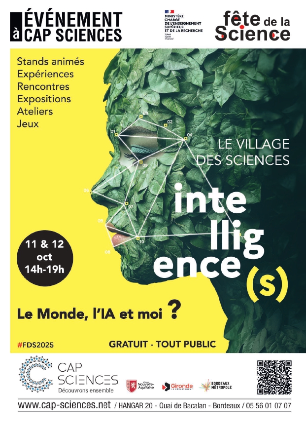 Alors viens explorer toutes ces questions au Village des Sciences 2025 à Cap Sciences ! Pendant deux jours, tu pourras expérimenter, jouer et rencontrer des scientifiques pour comprendre comment la science explore l’intelligence sous toutes ses formes.