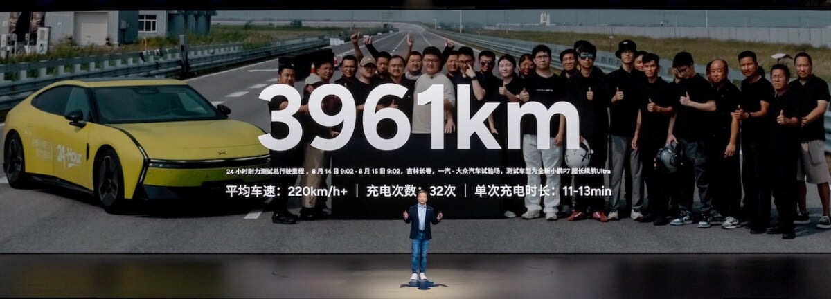 Nous vous avions parlé des caractéristiques de charge dans notre premier article, Xpeng a aussi profité de son évènement pour rappeler les performances énergétiques validées lors d’un test d’endurance de 24 heures, durant lequel une P7 2025 a parcouru 3 961 kilomètres à une vitesse moyenne de 220 km/h.