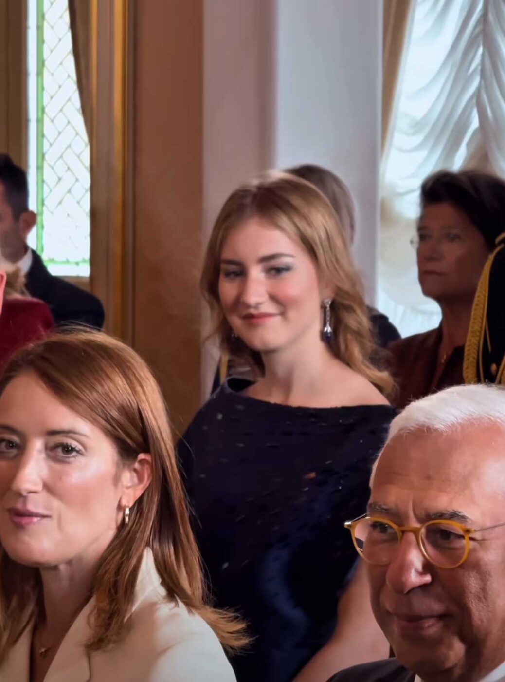 La princesse Elisabeth lors de la cérémonie d’abdication, devant la présidente du Parlement européen Roberta Metsola et le président du Conseil européen Antónia Costa