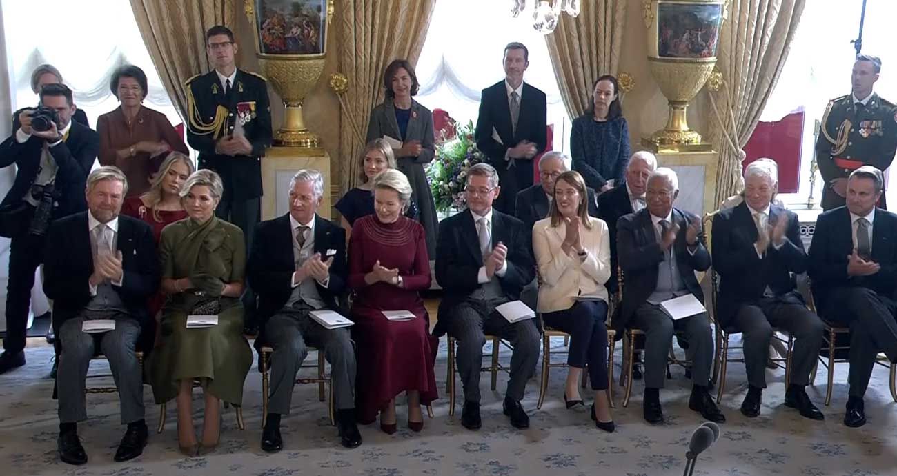 Le couple royal belge et le couple royal néerlandais assistent (à droite) à la cérémonie dans la salle du palais grand-ducal