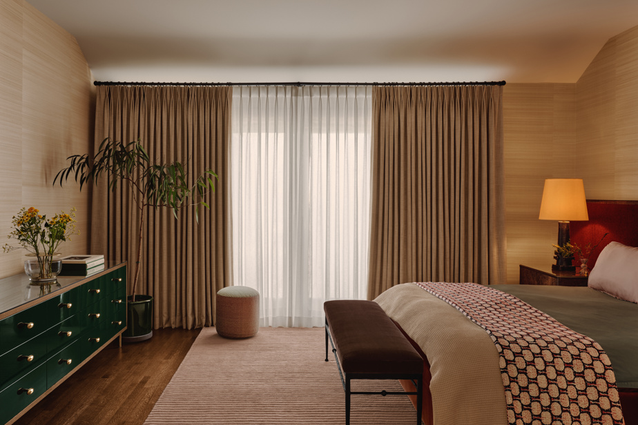 La suite parentale aménagée selon le désir des propriétaires de rappeler le style des hôtels
